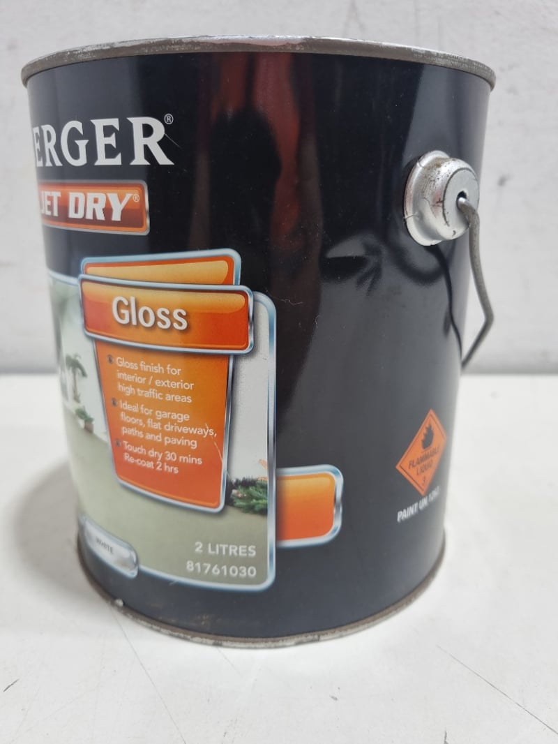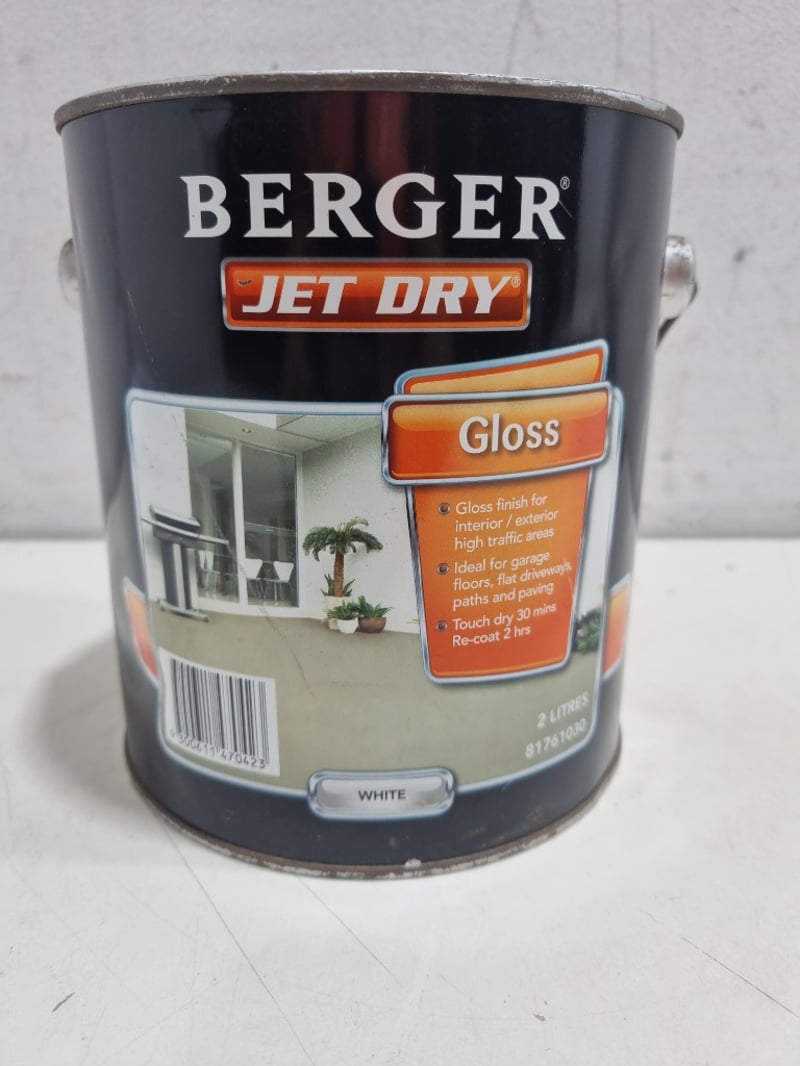 Berger,Jet dry,Gloss,White2L Bid per L, must take 2L