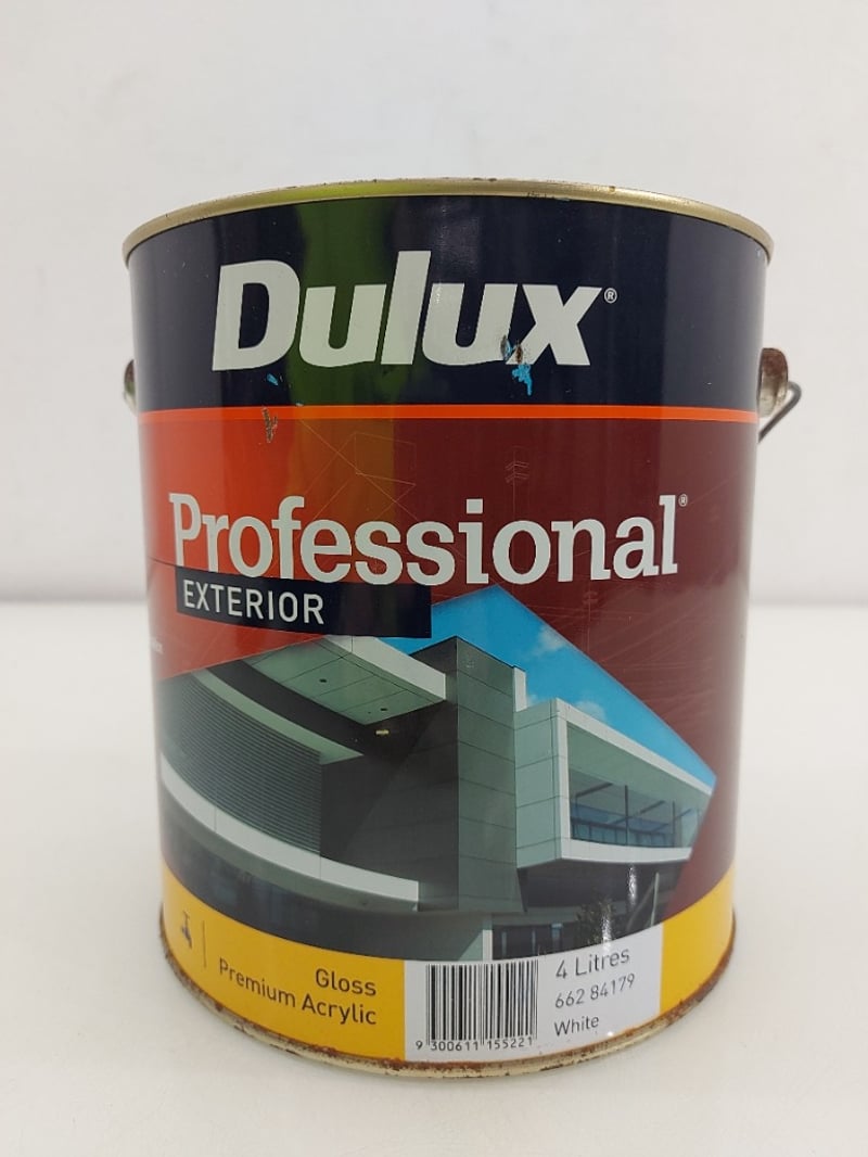 Dulux, Professional Exterior, Gloss Premium Acrylic, 4 Litres, 662 84179 White,Bid per 1L, Must Take 4L