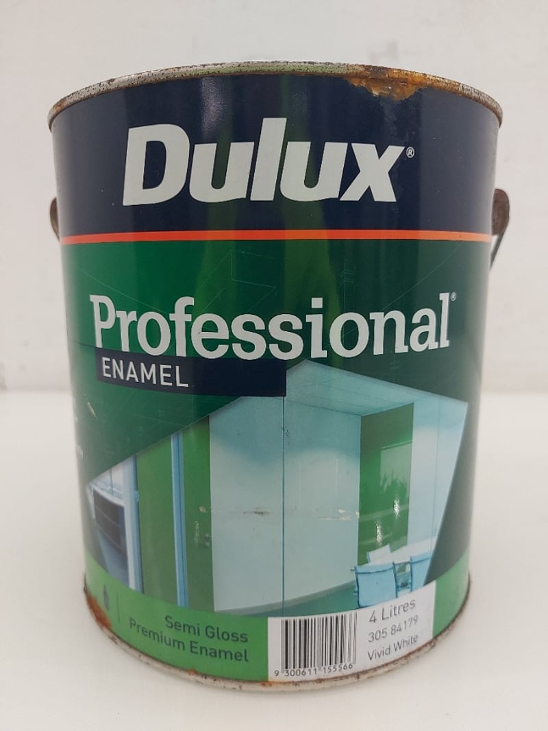 Dulux Professional Enamel, Semi Gloss Premium Enamel, 4 Litres, 30584179 Vivid White, Bid per 1L, Must Take 4L