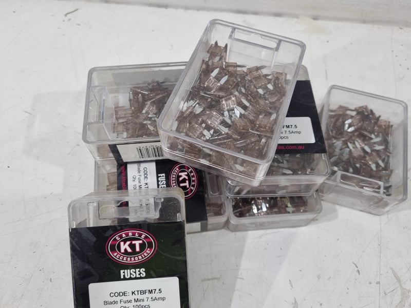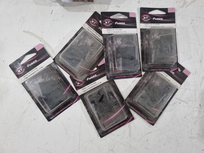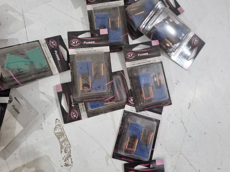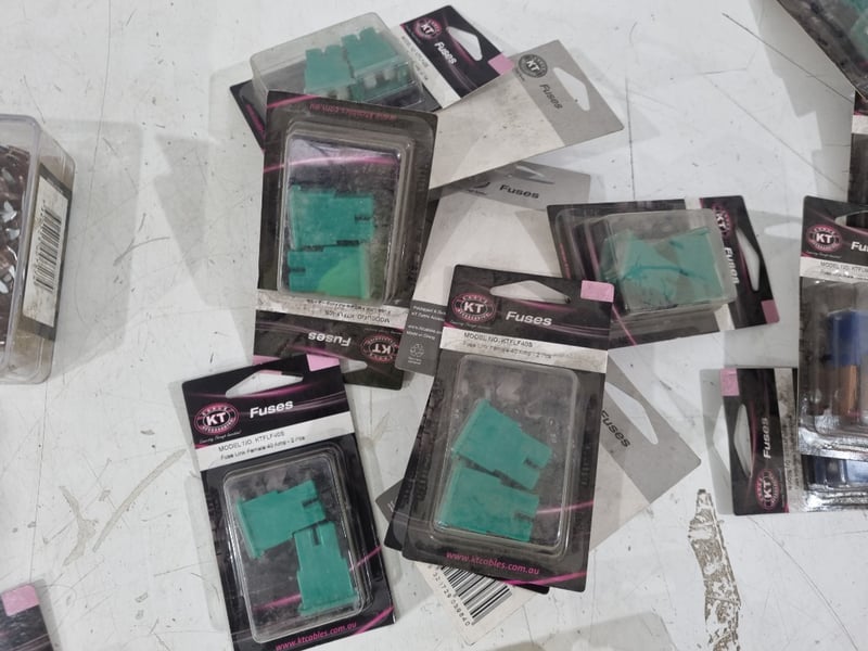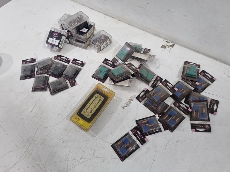 Variety of Automotive Fuses Includes Mini Blade Fuse 7.5a, link fuse 80a, 100a , 40a And National Luna Dual Battery MonitorQty Per Lot Sold as lot