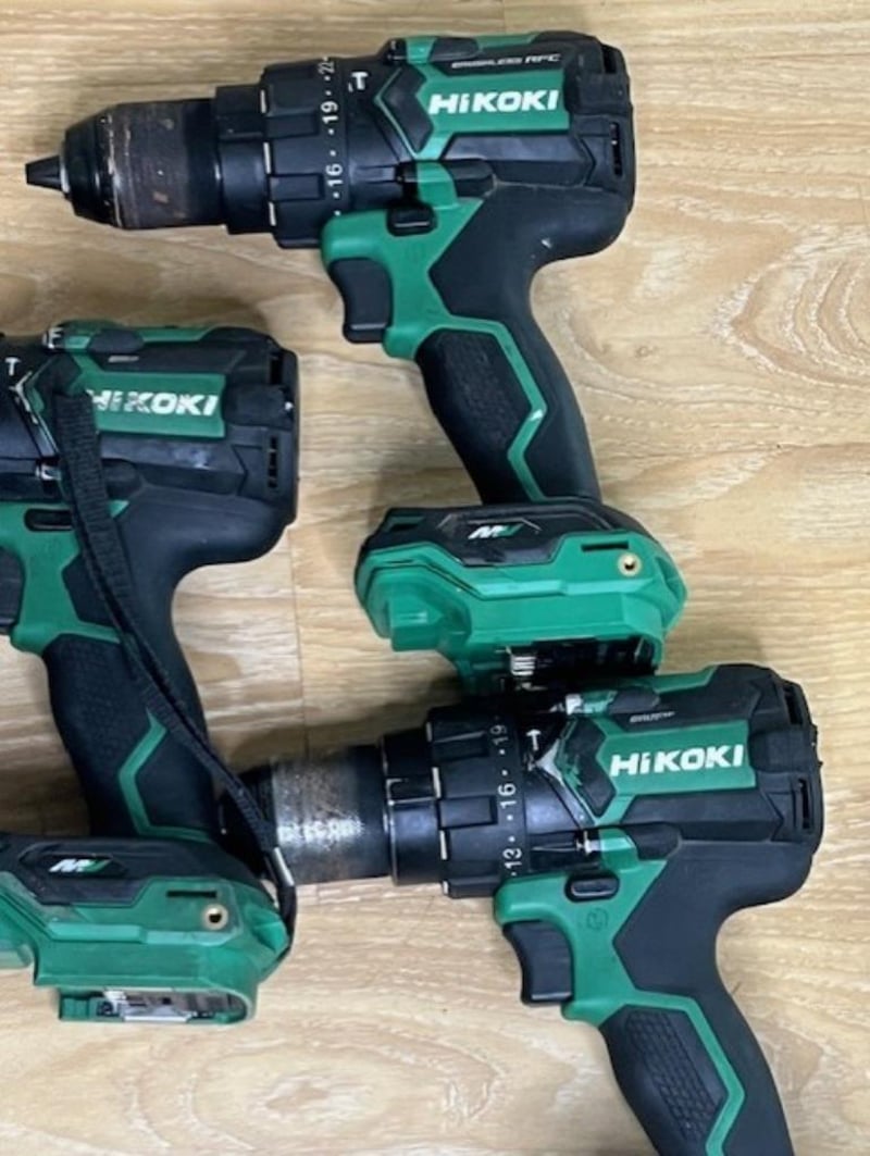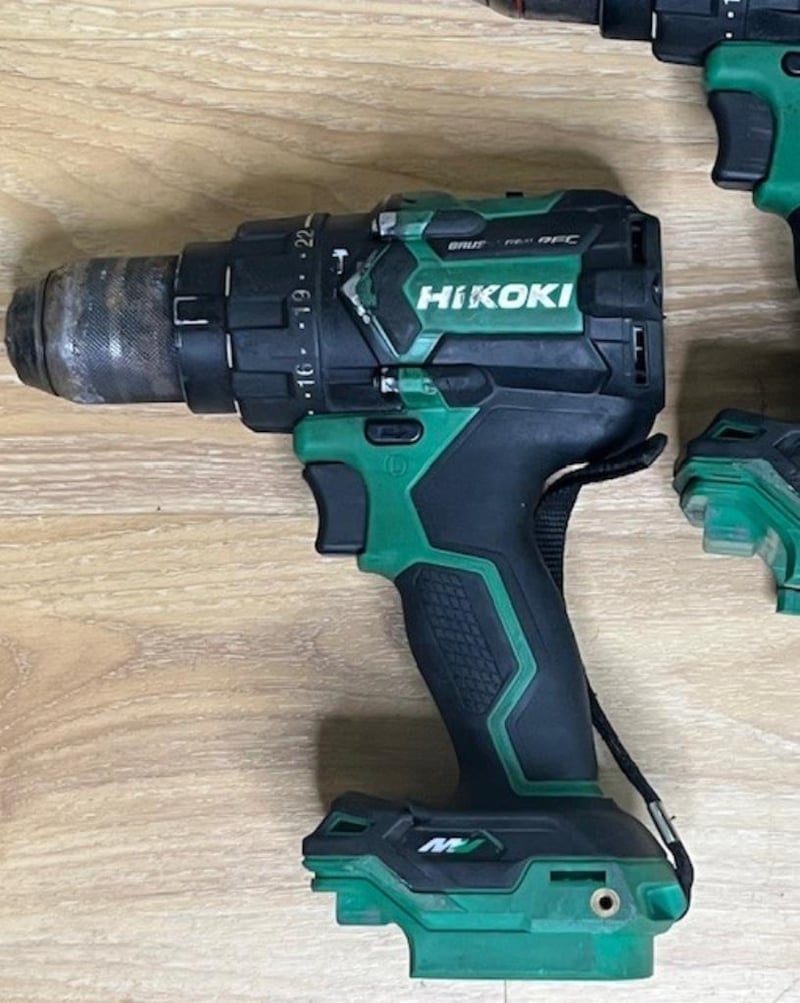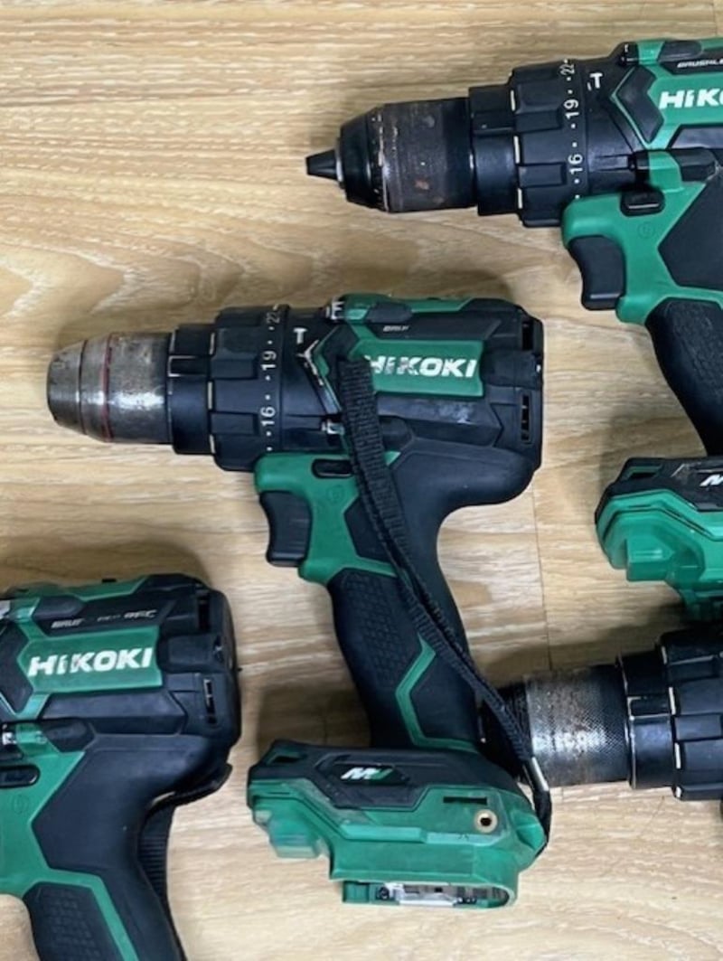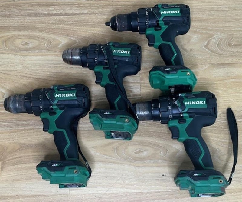 Cordless Hikoki 36V hammer drills. 4 x DV 36DC. Skins only, no batteries. Condition: Not working, untested, for parts or repair.