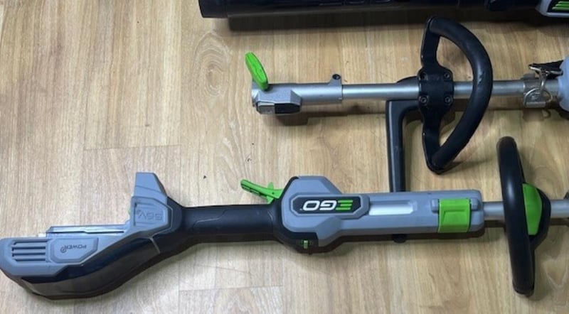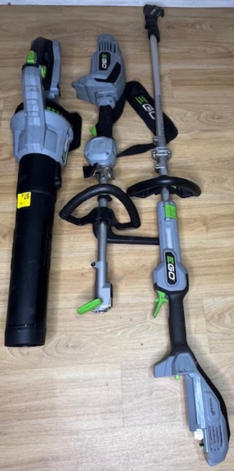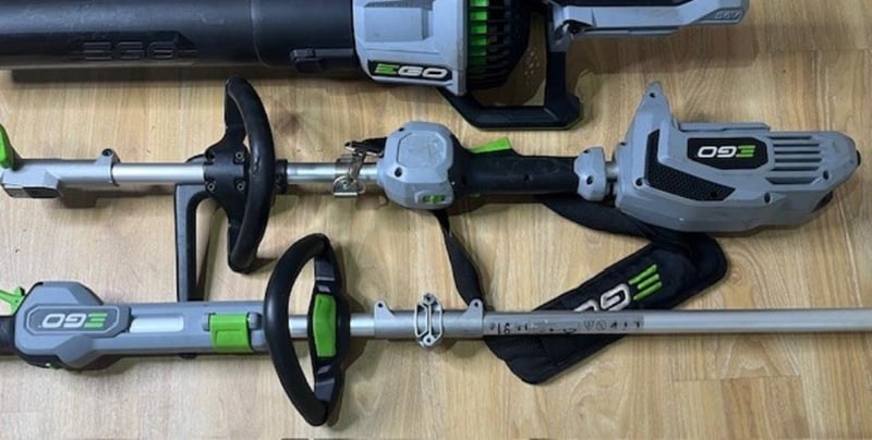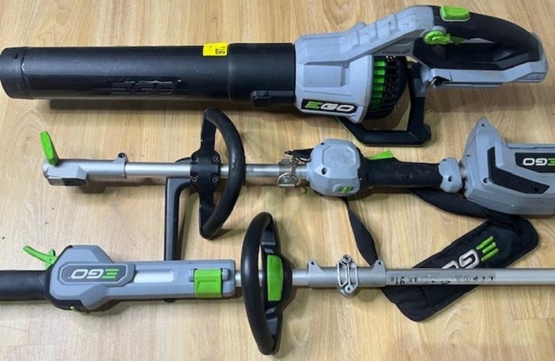Cordless EGO 56V garden tools. 1 x power head, 1 x ST1400E-ST line trimmer, 1 x LB7650E blower. Skins only, no batteries. Condition: Not working, untested, for parts or repair.