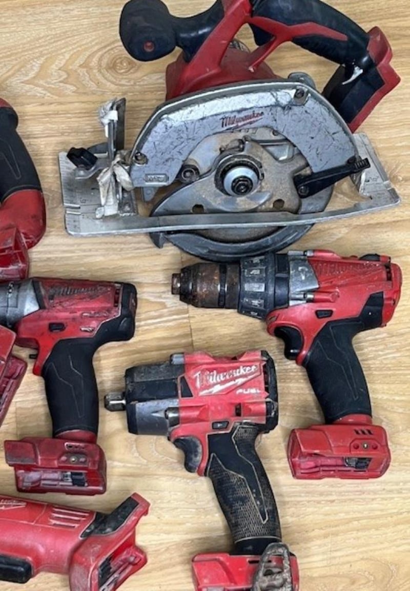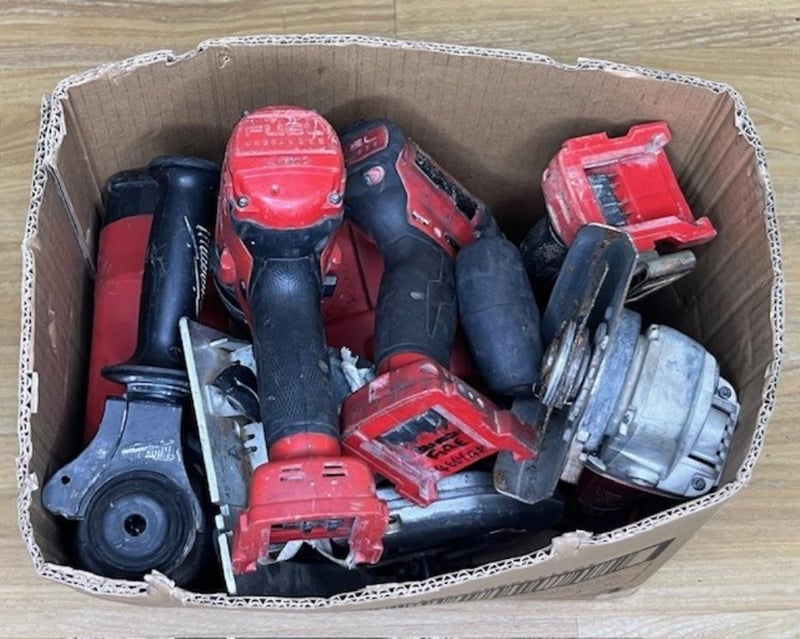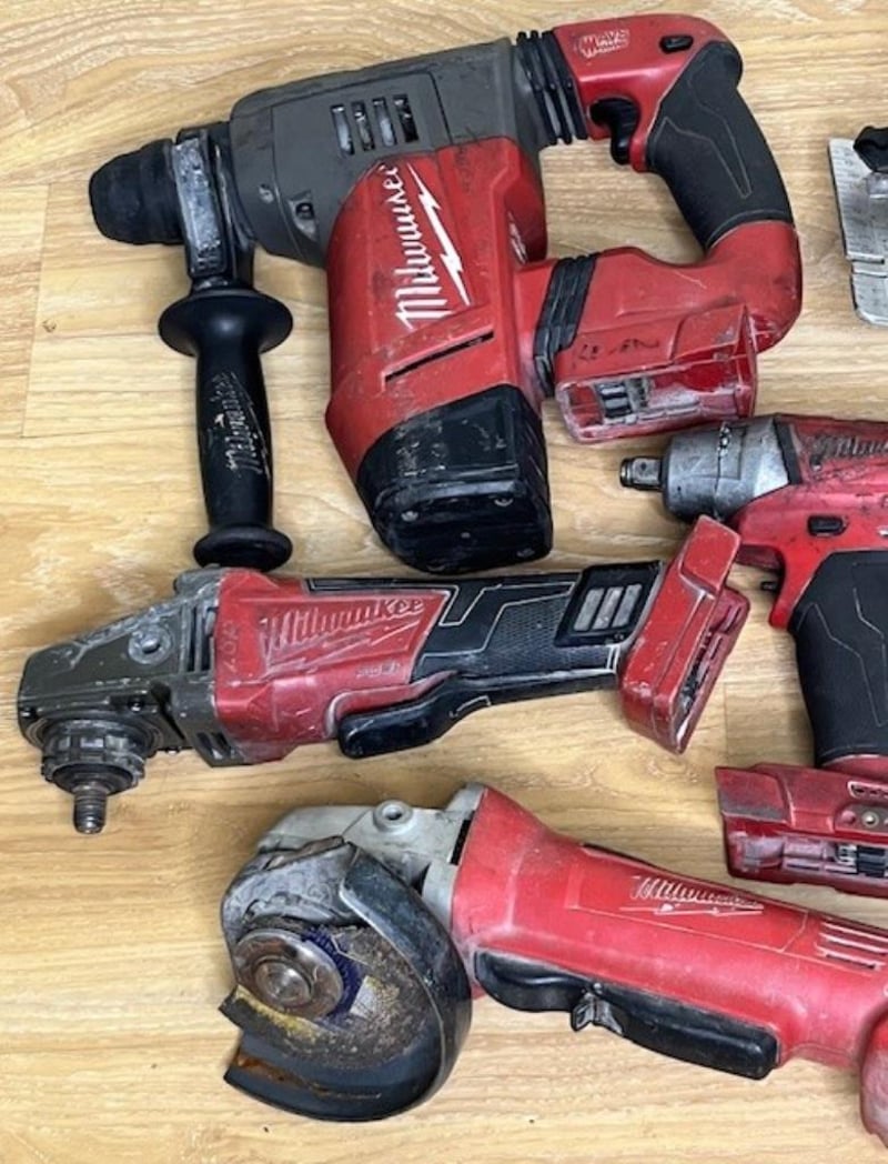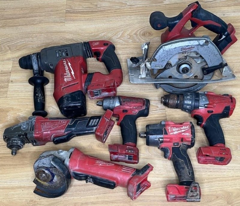 Cordless Milwaukee 18V tools. 1 x HD 18 CS circular saw, 1 x M18 CHP rotary hammer drill, 1 x CAG125XPD angle grinder, 1 x HD18 AG125 angle grinder, 1 x M18 CPD hammer drill, 1 x M18 impact wrench, 1 x M18 FMTIW2P12 impact wrench. Skins only, no batteries. Condition: Not working, untested, for parts or repair.