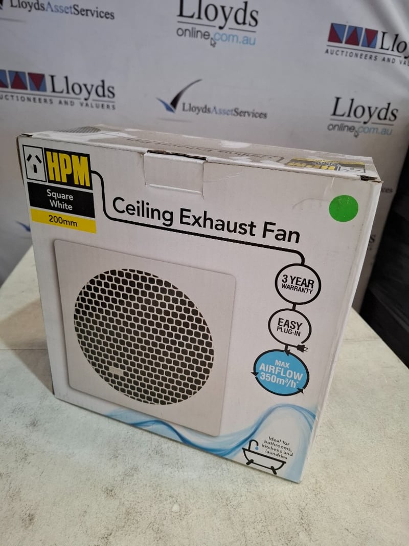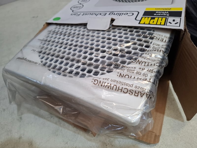 HPM 200mm Square White Ceiling Exhaust Fan.