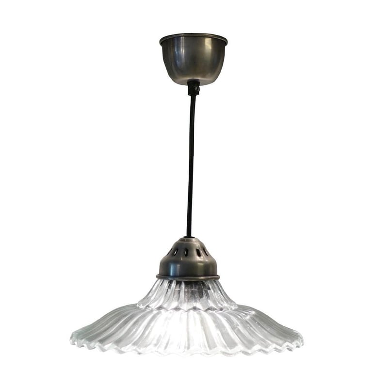 Scalloped glass ceiling light with matching antique silver (colour) metal ceiling cup, d.26.5cm, h.7.5cm, cable 130cm
