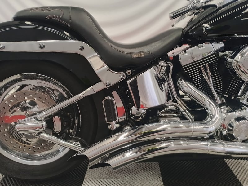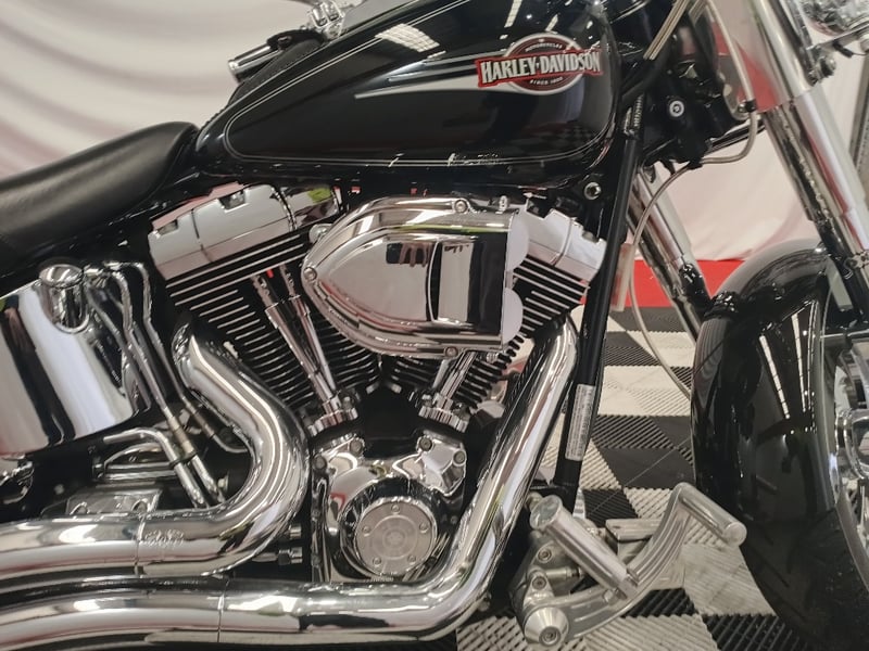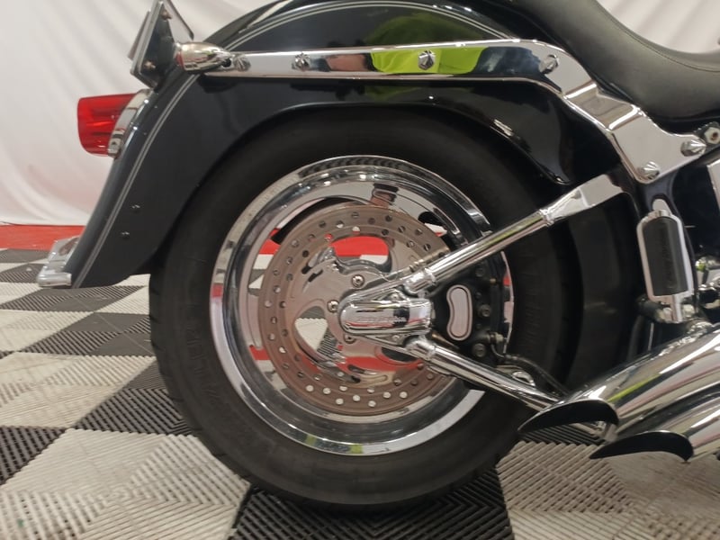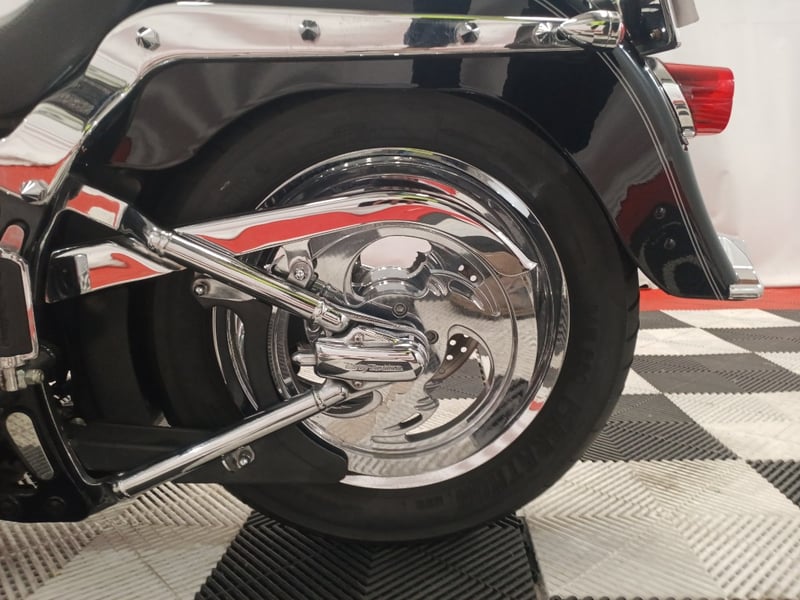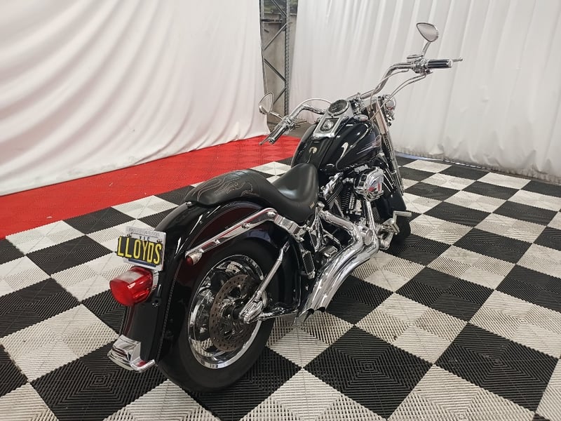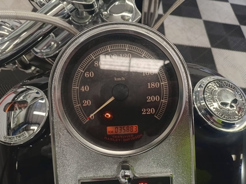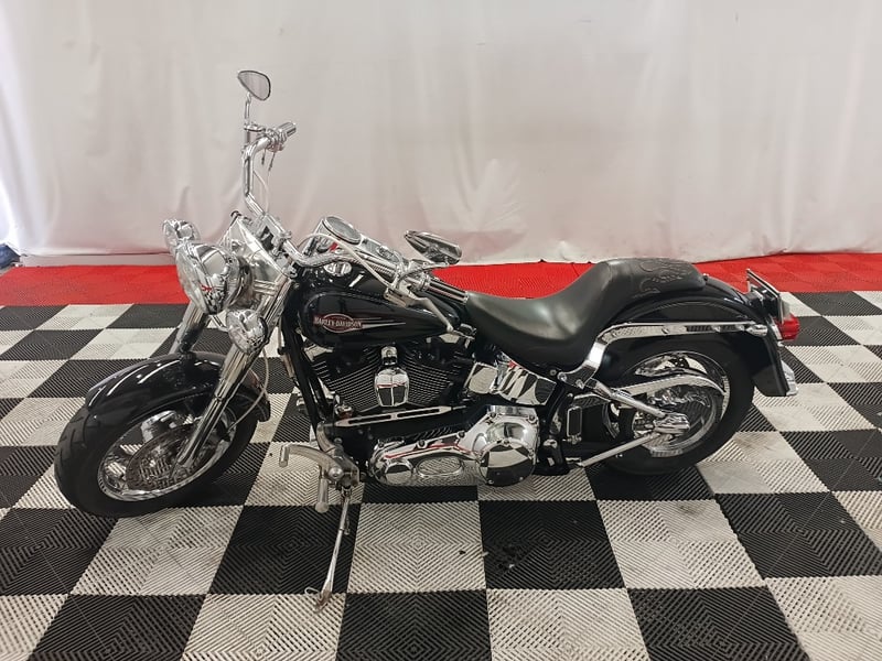 Vendor Advises Additional extras totaling around $10,000 including chrome swing arms, wheels ($5,000), handle bars, mirrors, switches & controls, chromed forks, forward controls, rear footrests, seat, Fatboy front guard, new battery. This bike is a one owner bike since new and has only travelled 800km in the last 9 years