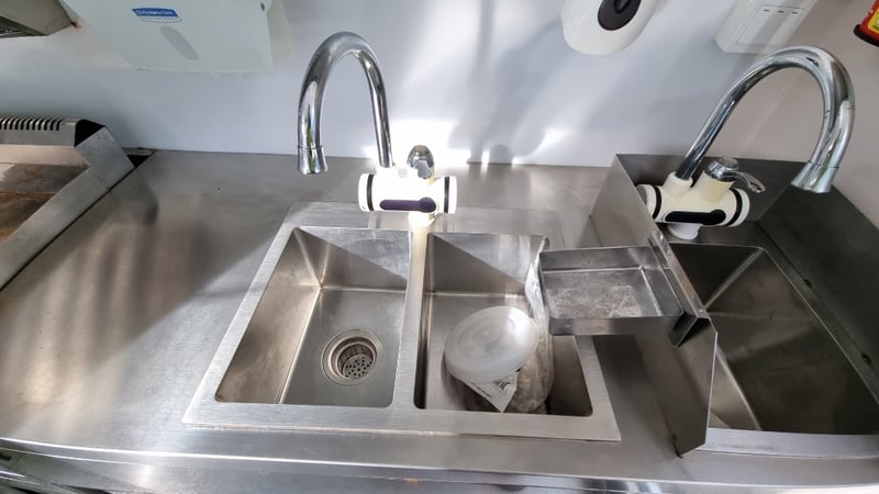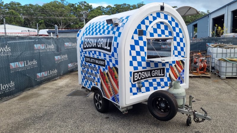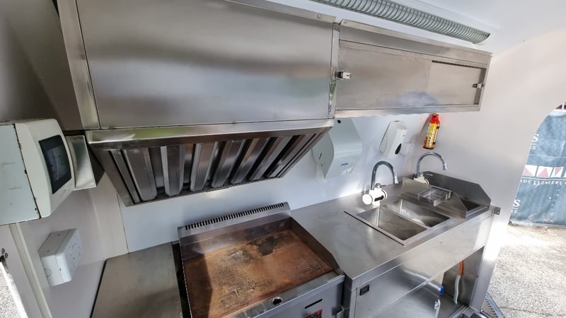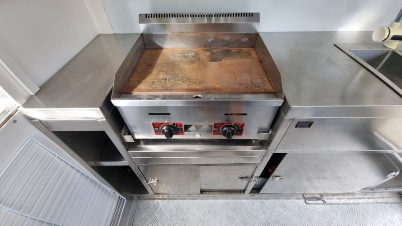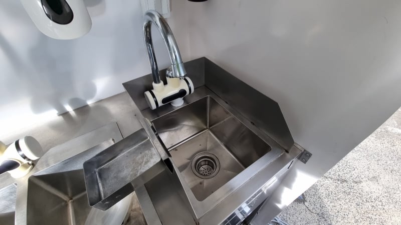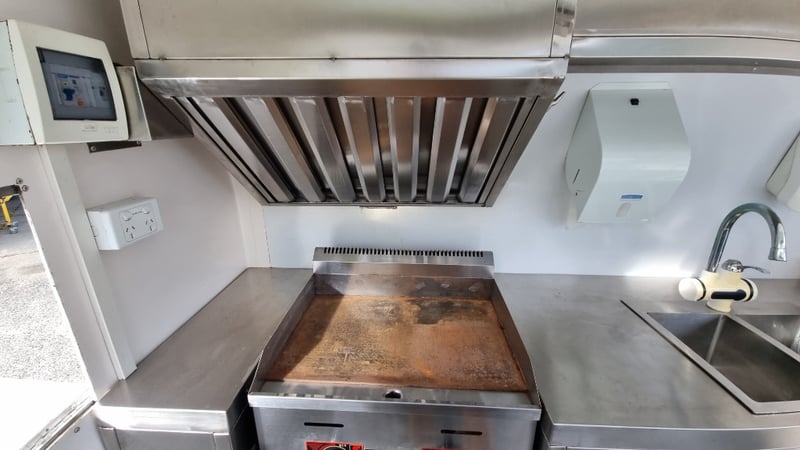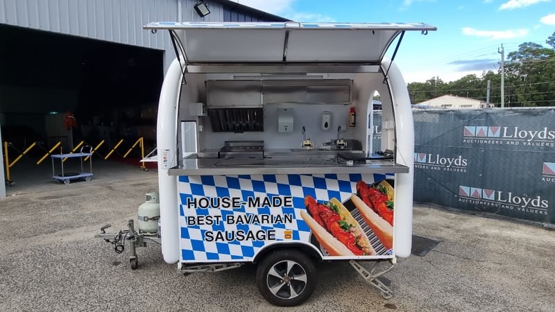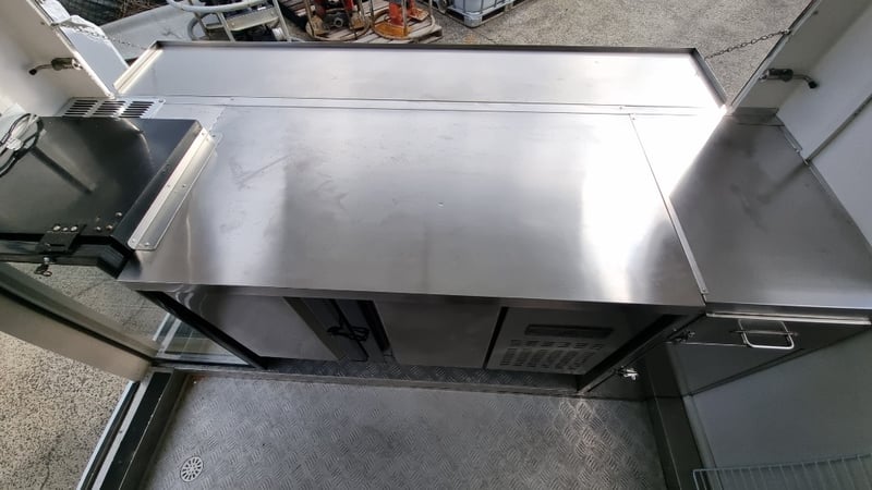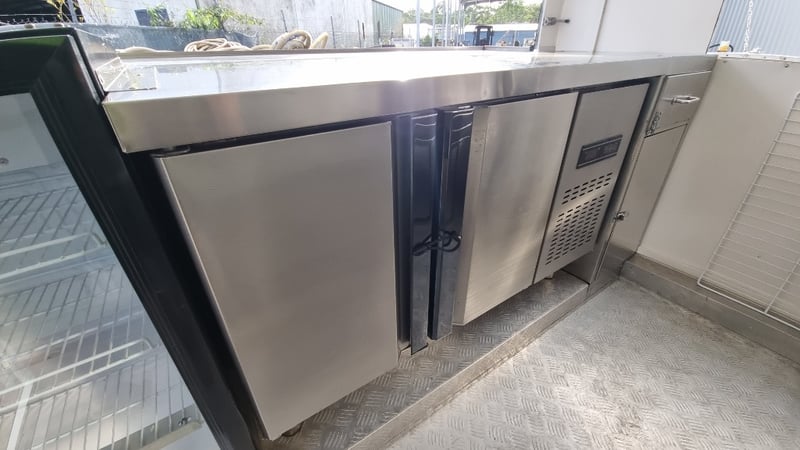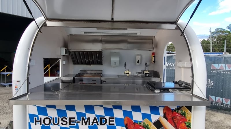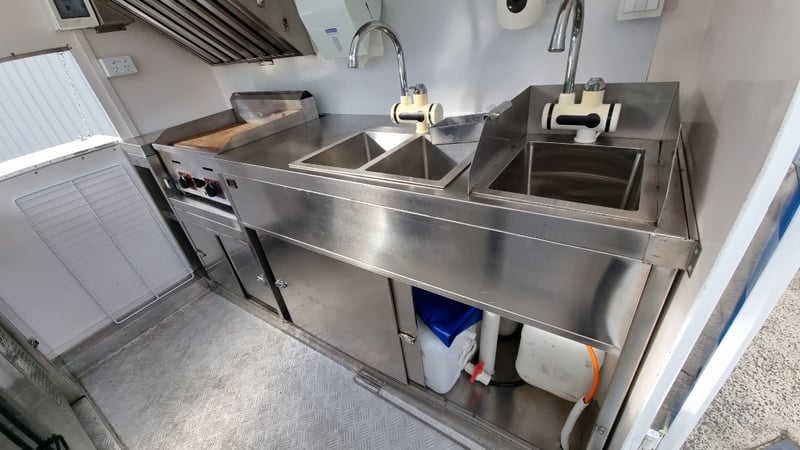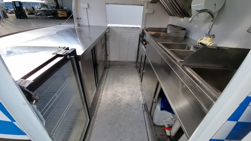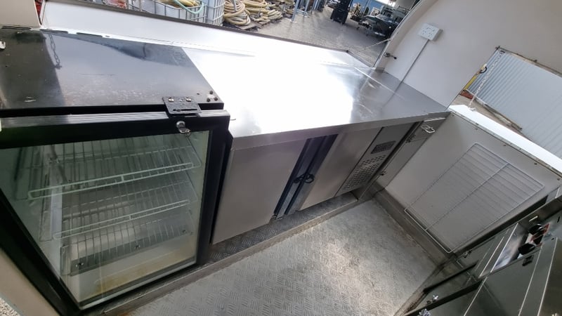 Description/Extras: Compliant Commercial Stainless Steel Kitchen, Features Dual Sinks, Drinks Fridge, Food Fridge, Gas Hotplate, Range Hood, Dual Battery With Inverter and Charger, Water Pump, Mains Power Plug in Point, Stabiliser Legs
