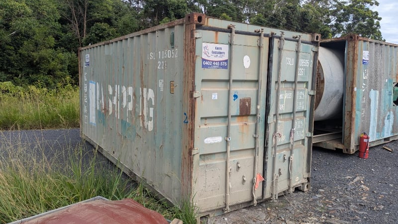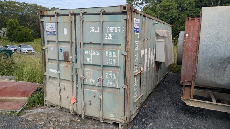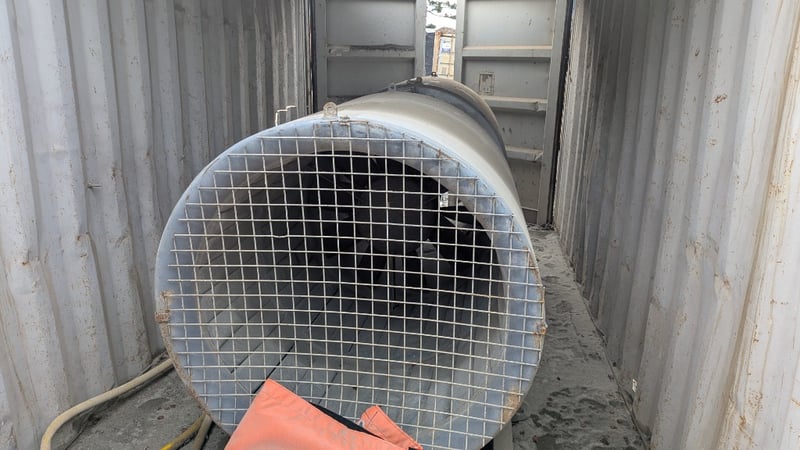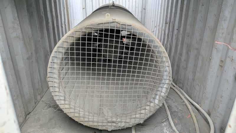 Jet Fan In 20 FT Container, Section Cut Out of Roof, Container CSLU 108505 2 - 22GI, Double Doors, #Plant&Equipment Location: Coffs Harbour, NSW (Not Lloyds Branch) Contact: Glenn Aylward - 0418 665 100