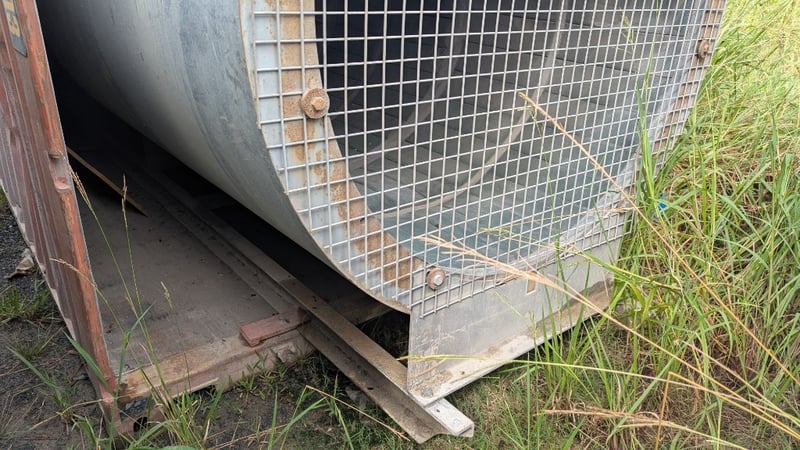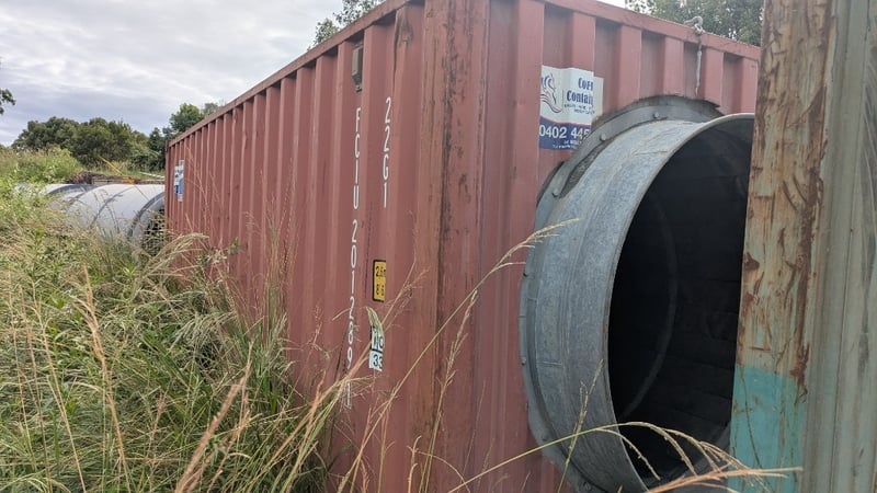 Jet Fan In 20 FT Container, Container ID: FCIU201289- 22G1, Panel Cut In Side, No Doors #Plant&Equipment Location: Coffs Harbour, NSW (Not Lloyds Branch) Contact: Glenn Aylward - 0418 665 100