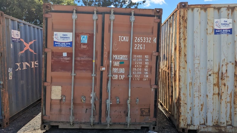 20 FT Container, TCKU265332 4 - 22G1, Lights and PowerPoint, Some Dents, Signs Of Rust Max Gross 30480 kg Tare 2230 kg Payload 28250 kg Cub. Cap. 33.2 CUM Note: Contents NOT Included #Plant&Equipment Location: Coffs Harbour, NSW (Not Lloyds Branch) Contact: Glenn Aylward - 0418 665 100