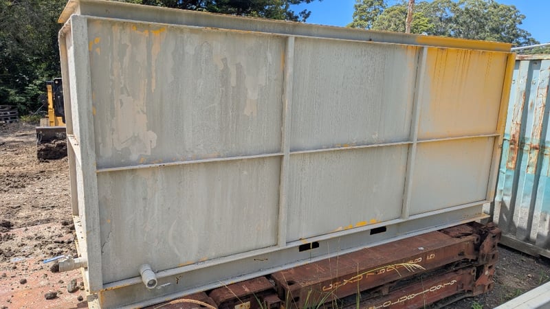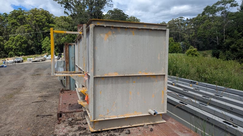 Sediment Tanks, 3 Sections, Steps With Viewing Platform, Drainage Points, Colour Yellow, Dimensions: 198cm(H)×424cm(W)×155cm(D) #Plant&Equipment Location: Coffs Harbour, NSW (Not Lloyds Branch) Contact: Glenn Aylward - 0418 665 100