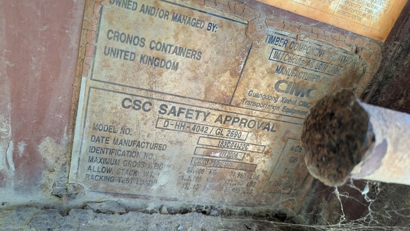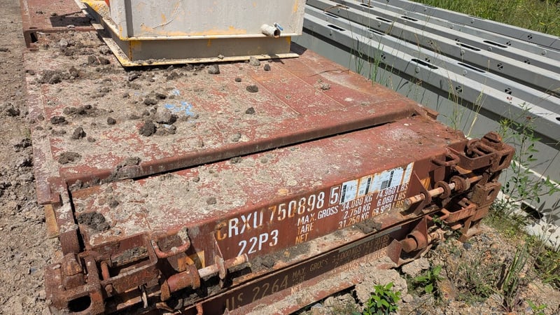 Fold Down 20 FT Container, Base with Two Ends, CRXU750808 5 - 22P3 Max Gross 34000 kg Tare 2750 kg Net 31250 kg Note: There Are Two Fold Down Containers Lot 23 Is the Top One, 24 On Bottom #Plant&Equipment Location: Coffs Harbour, NSW (Not Lloyds Branch) Contact: Glenn Aylward - 0418 665 100