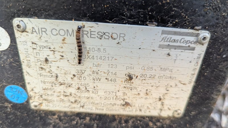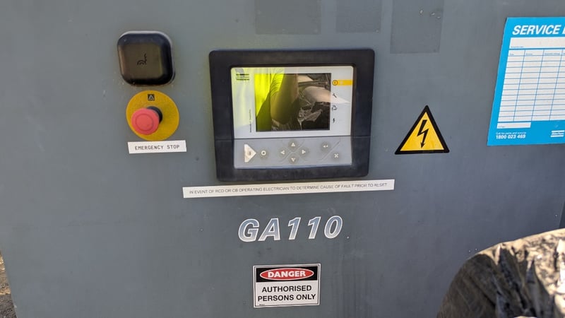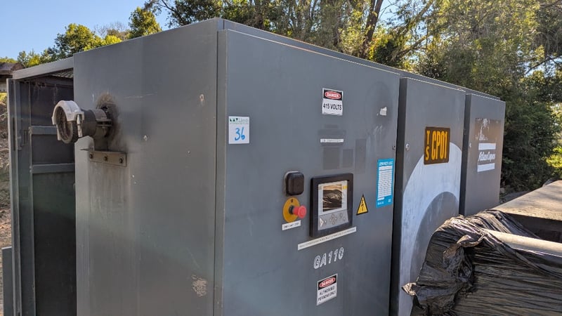 Industrial Air Compressor, Atlas Copco, Model: GA110, Electric Control Panel, Dimensions: 200cm(H)×180cm(W)×200cm(D) #Plant&Equipment Location: Coffs Harbour, NSW (Not Lloyds Branch) Contact: Glenn Aylward - 0418 665 100