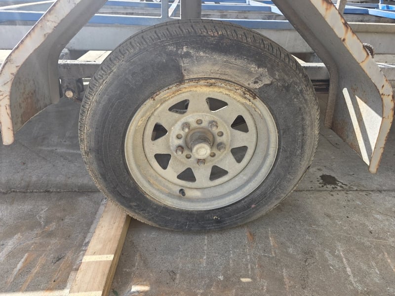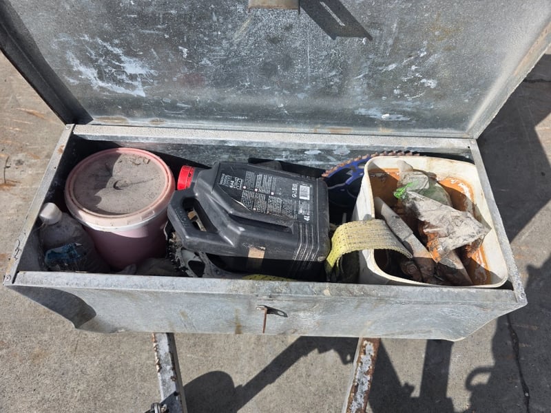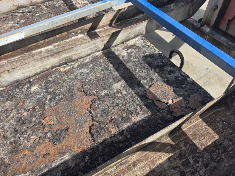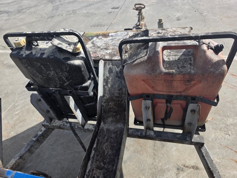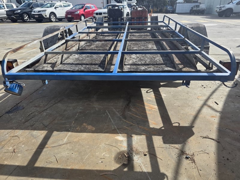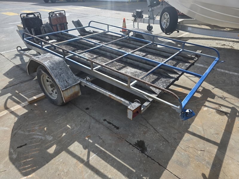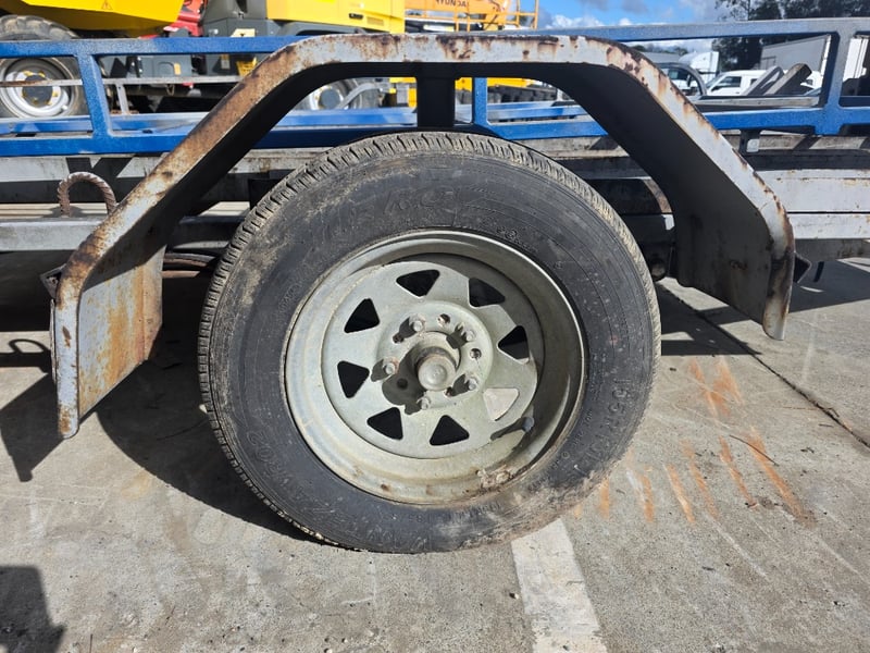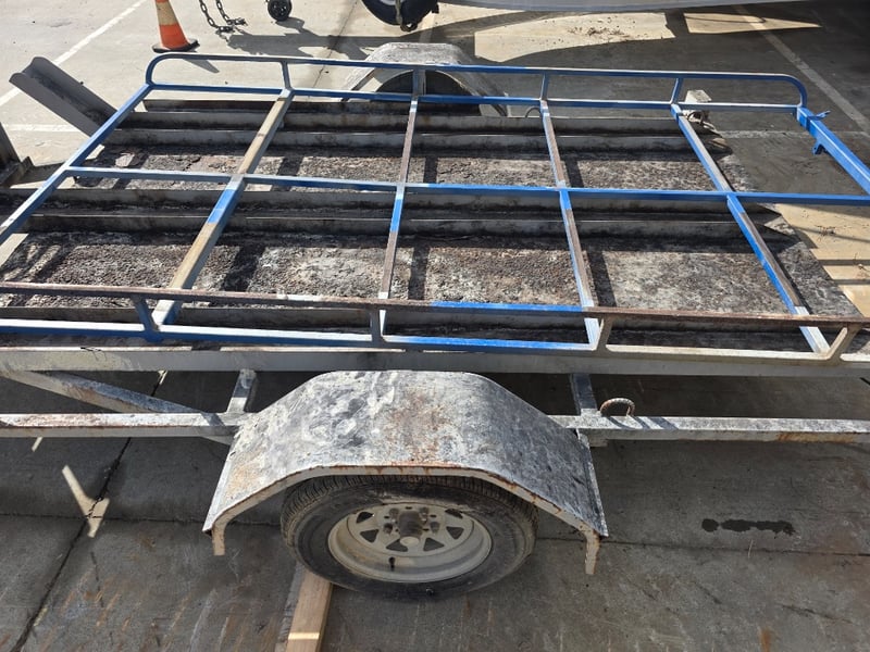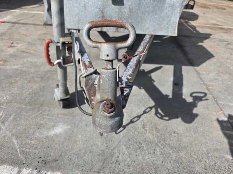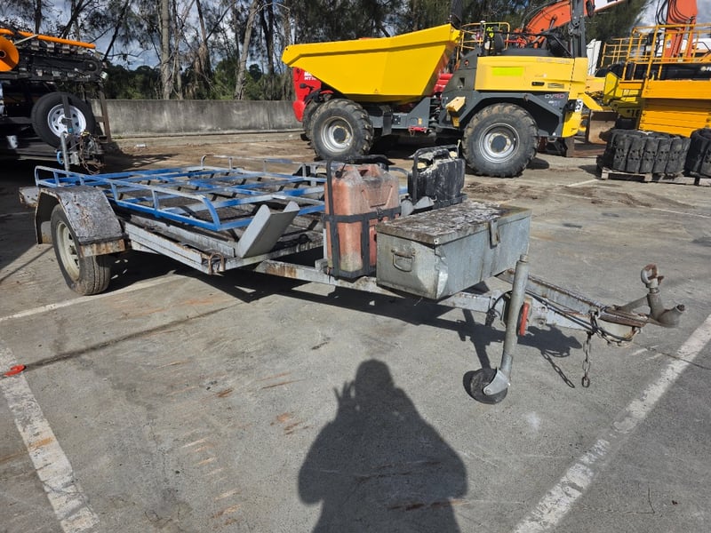 Description: 50ml hitch, Tray extension not attached, 2x Jerry Cans, Extras in toolbox, tyres flat, Rust throughout