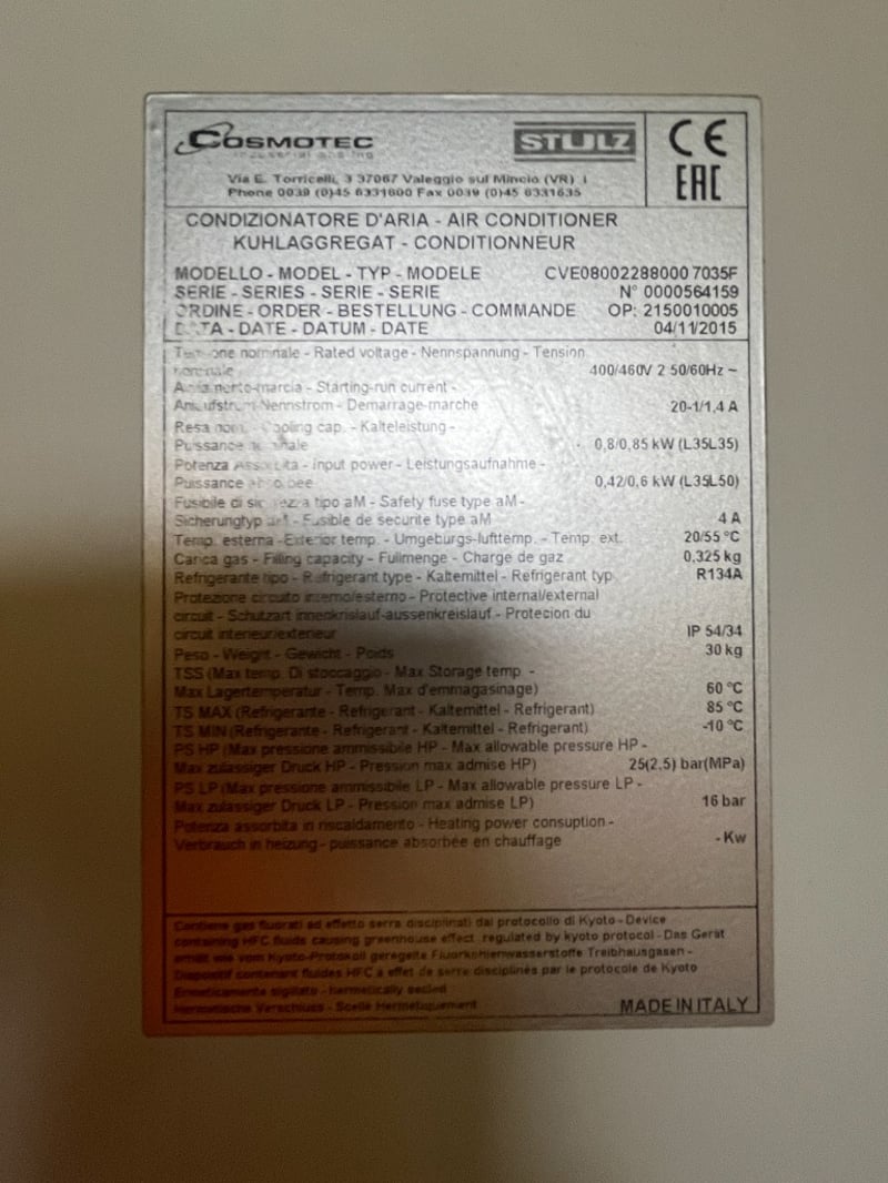 Notes/Extras: Cosmotec Special Purpose Air-Conditioner,