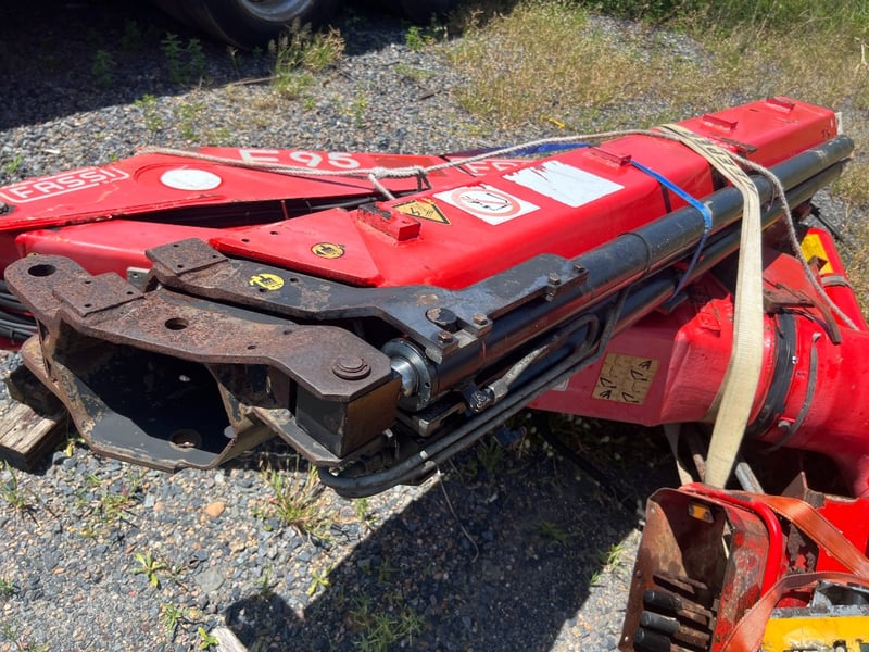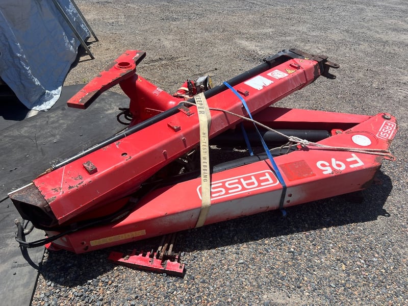 Fassi F95 Truck-Mounted Knuckle Boom Crane Brand: Fassi Model: F95 Type: Knuckle Boom / Articulating Loader Crane Configuration: Includes main boom, outer boom, and hydraulic extensions. Control Valve Bank: Manual lever controls are included/attached to the base. Mounting: Designed for chassis mounting behind the cab or at the rear of a truck bed. Condition: This unit is currently uninstalled and stored on the ground. Visual: Typical job-site wear including paint scuffs, minor surface oxidation, and grease build-up around pivot points. Hydraulics: Main cylinders and hoses are present, though hoses should be inspected for weather-Cracks, before being pressurized. Note: Sold "As-Is, Where-Is." No truck or PTO (Power Take-Off) unit is included in this sale. Location: #MACKAY Contact Kyle Haywood | Ph 0487 020 888 | [email protected] Holding Yard 3/263 Connors Road, Paget , MACKAY QLD, Australia Lloyds Stock# 996240+2