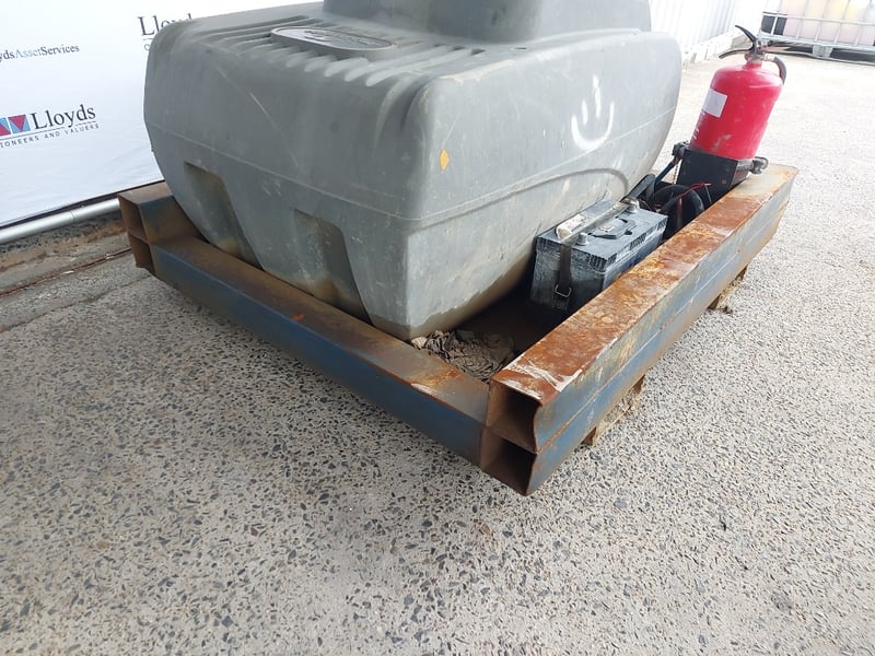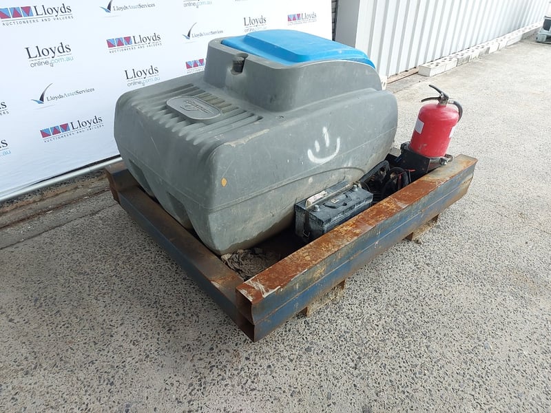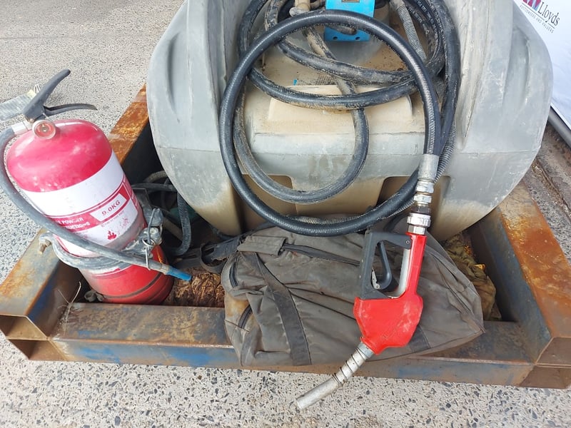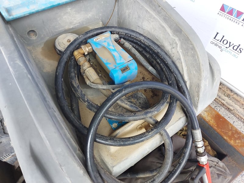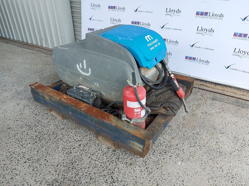 Portable Fuel Pump Tank, Macnaught, Includes fire Extinguisher, Battery, Hose With Nozzle And Steel BaseDimensions: 100cmH x 121cmD x150cmWNOTE Contains Petrol, Untested