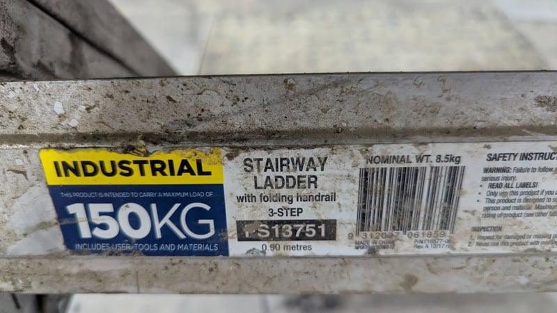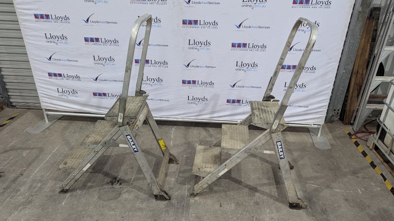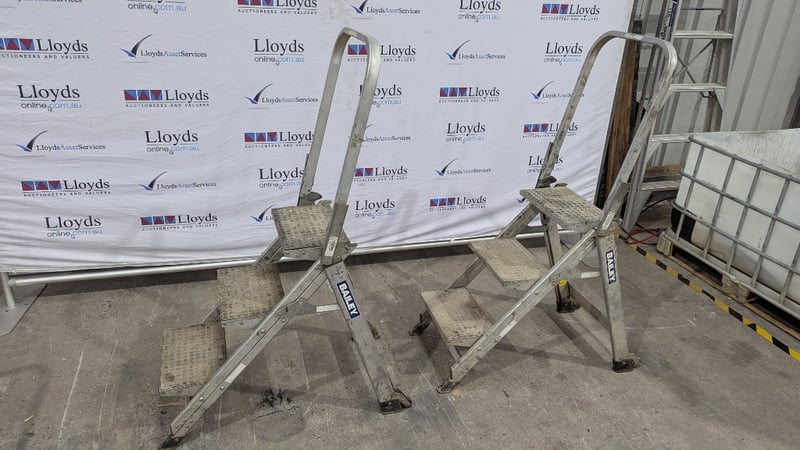 Stairway Ladder with Folding Handrail, Bailey, Model: PS13751, 3 Step, Max Capacity 150 kg, Quantity 2 Sold As Lot