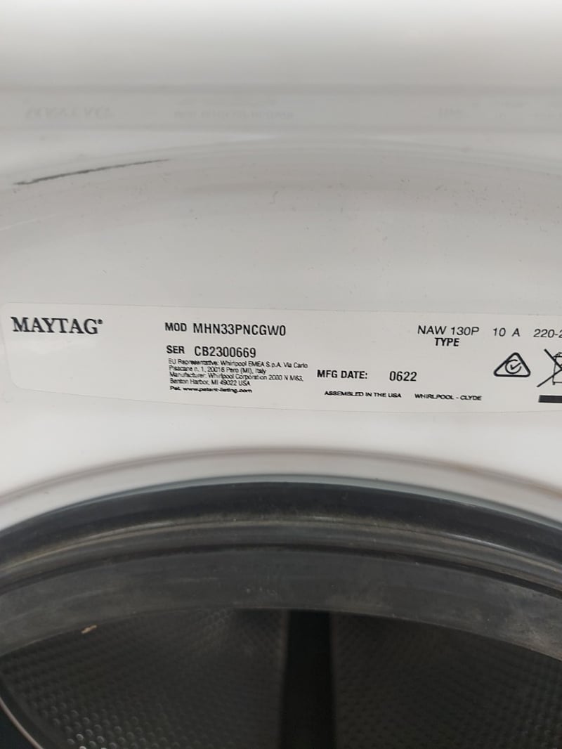 Commercial Washing Machine Maytag, Model MHN33PNGGW0, Dimensions 70cmD×69cmW×99cmH