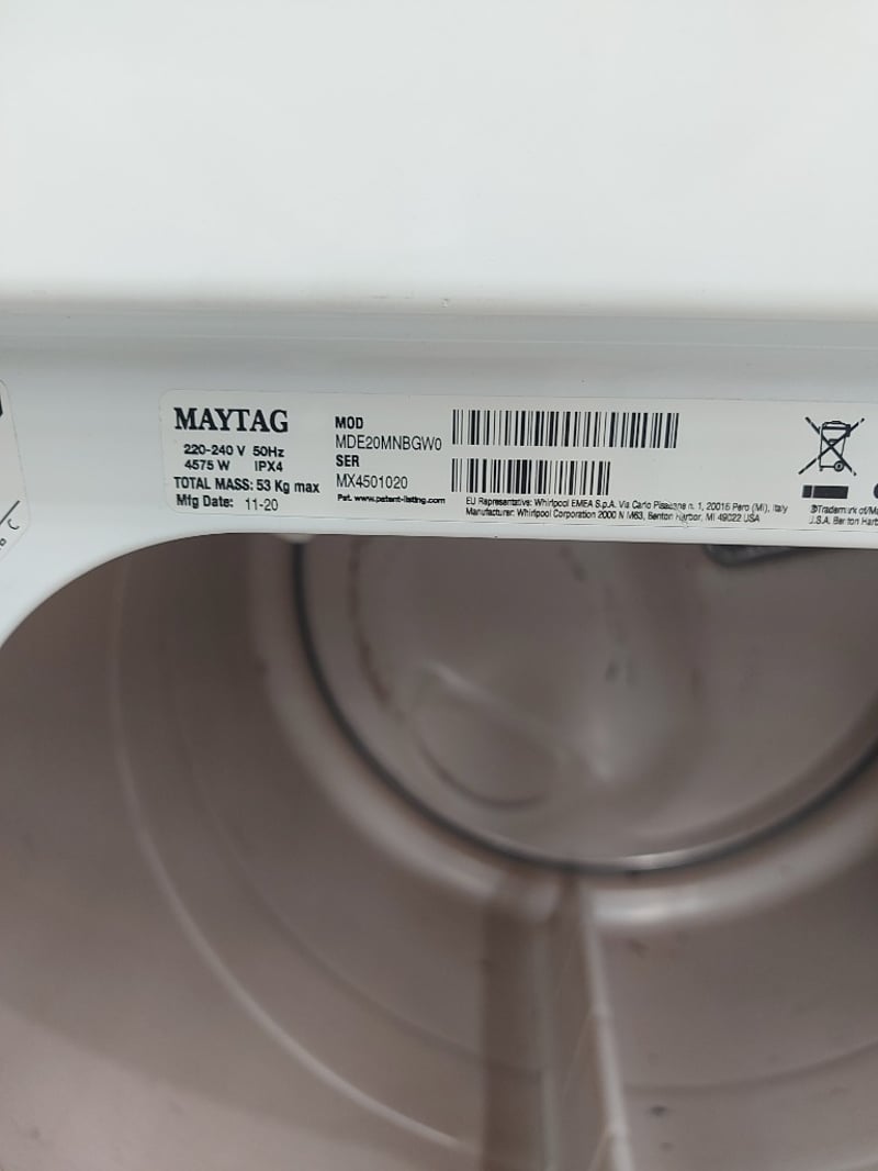 Commercial Dryer MayTag, Model MDE20MNBGW0, Dimensions 72cmD×68cmW×104cmH