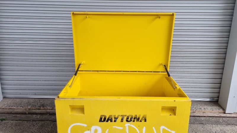 Steel Site Toolbox, Features, Gas Struts and HandlesDimensions 85cmH x 121cmW x 76cmD
