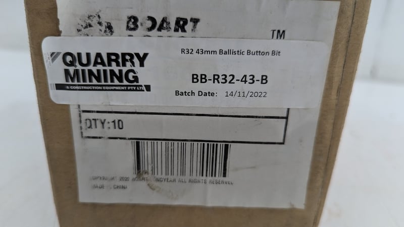 R32 43mm Ballistic Button Bits, Quarry Mining, Part No: BB-R32-43-B, Dimensions: 11.5cm(H)×4.5cm(W), Quantity 12