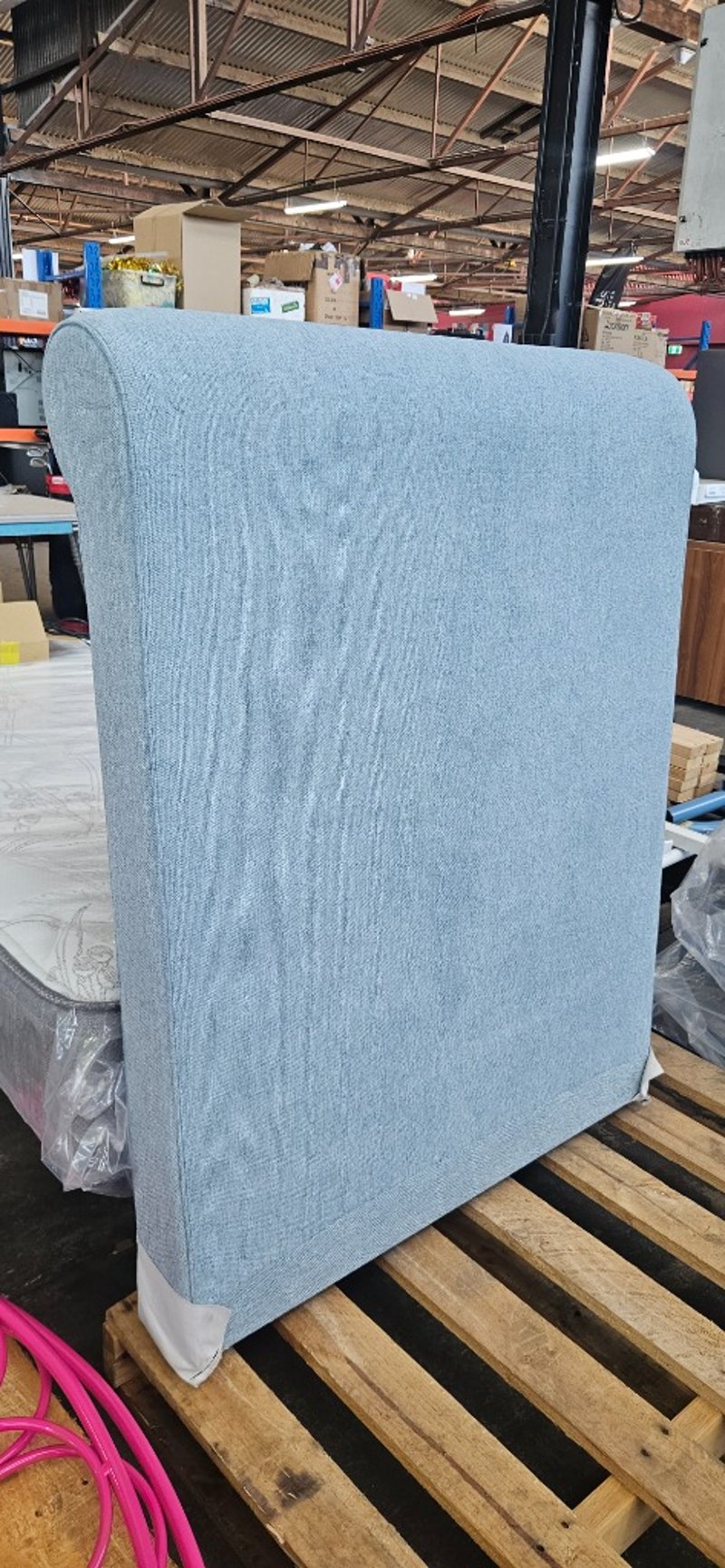 RRP $599, ALBURY HEADBOARD, SINGLE SA MADE ALBURY HEADBOARD IN LIGHT BLUE.