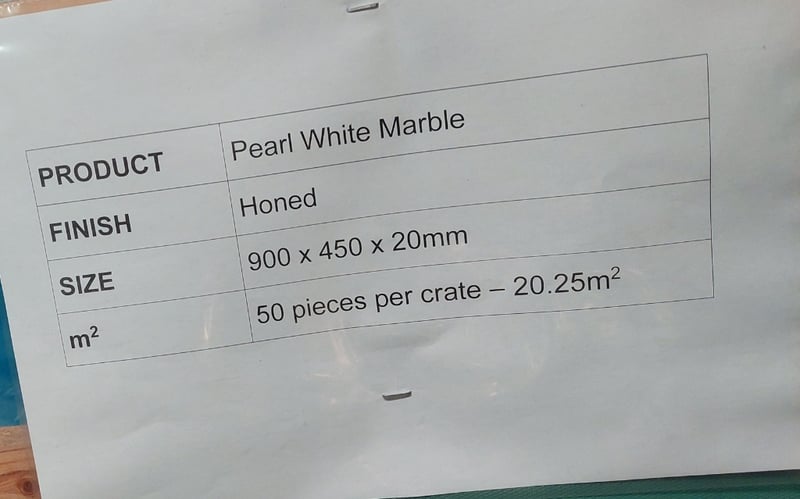 M2 per crate: 50 pieces per crate 20.25m squared.