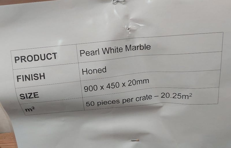 Pearl white marble, honed finish tiles.