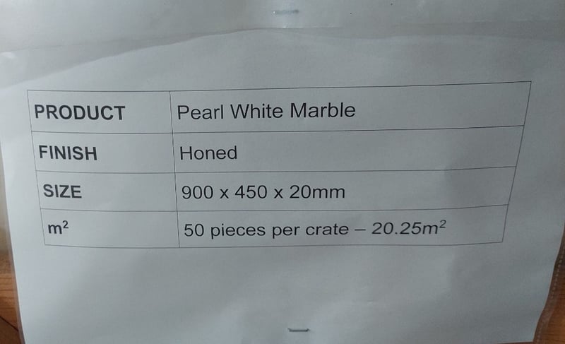 Pearl white marble, honed finish tiles.