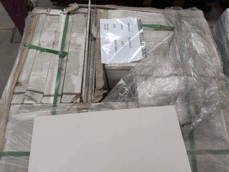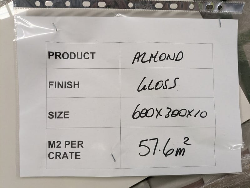 Almond by rmsmarble, gloss finish tiles.Dimensions: 30x60x1cmM2 per crate: 57.6m2Bid per pallet.Note: signs of wear.
