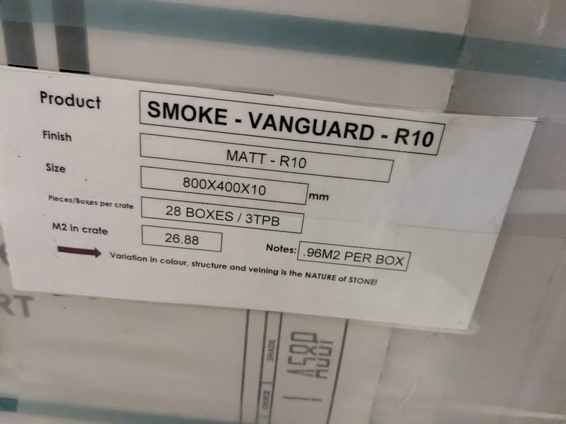Smoke Vanguard by pastorelli, matt finish tiles.Dimensions: 80x40x1cmM2 per crate: 26.88m2Bid per pallet.Note: signs of wear.