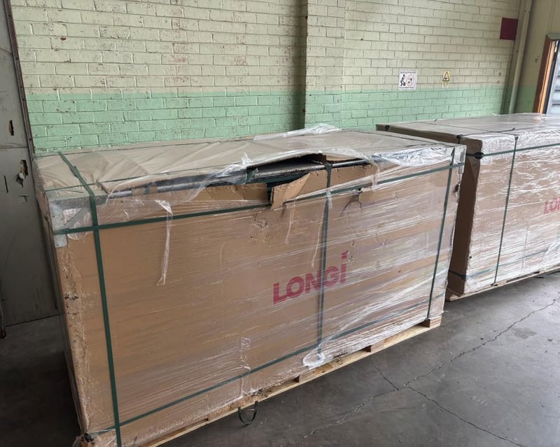 Value $3945.00 Solar Panels, Longi, Mono Solar Module, LR8-66HGD-625M, 36 Panels, Some Damaged in Transport, Please refer to photos.