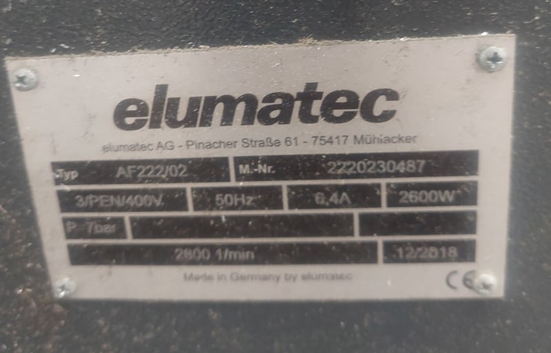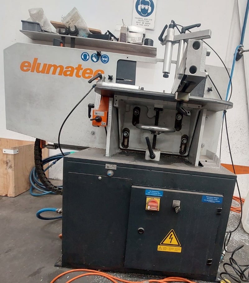 Elumatec AF 222/02 End Milling Machine. Dimensions: 124cm H, 92cm W 148cm L Note: item is untested, signs of wear.