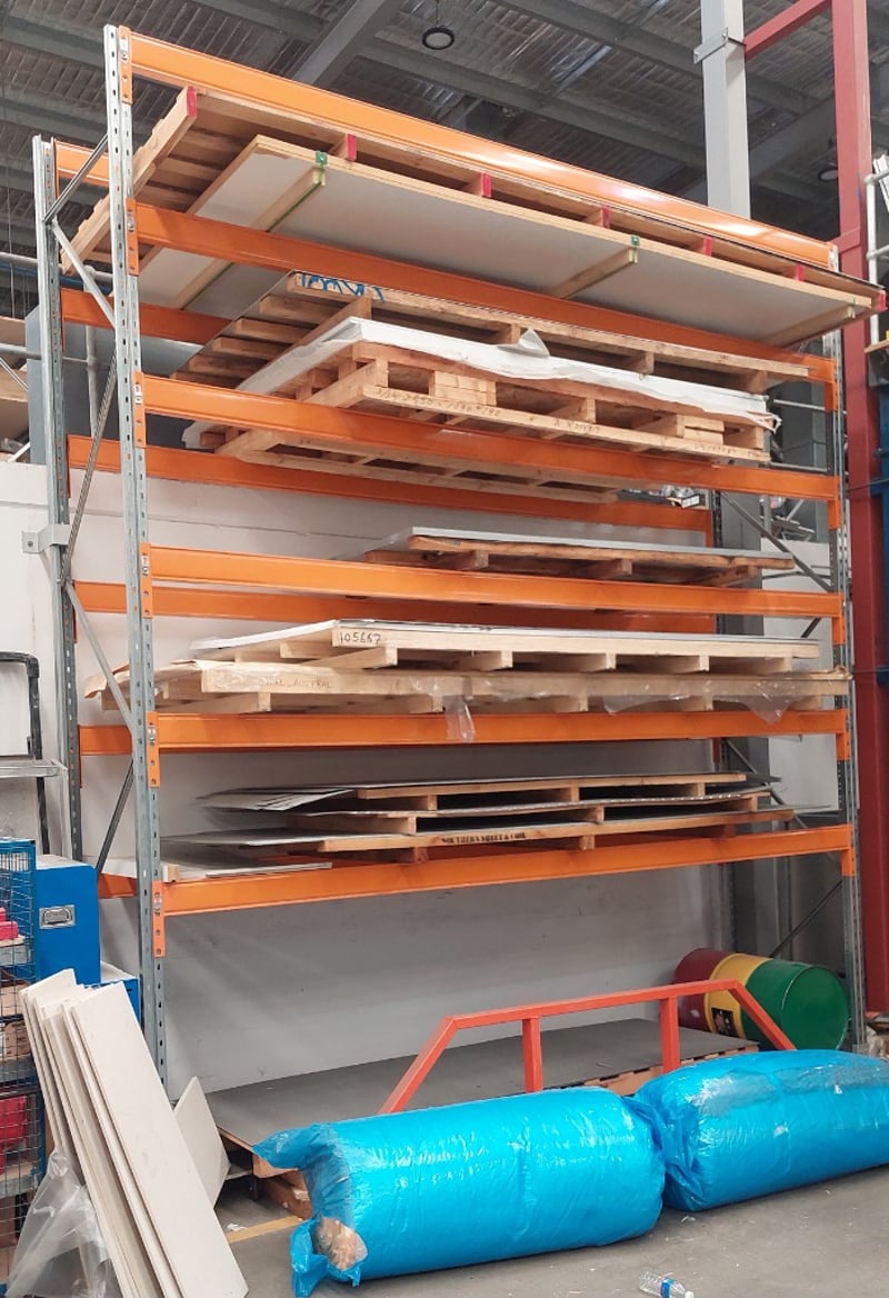 Industrial pallet racking system. (Racking only)Dims:550cm H, 110cm W, 450cm D.Notes: item untested and signs of wear