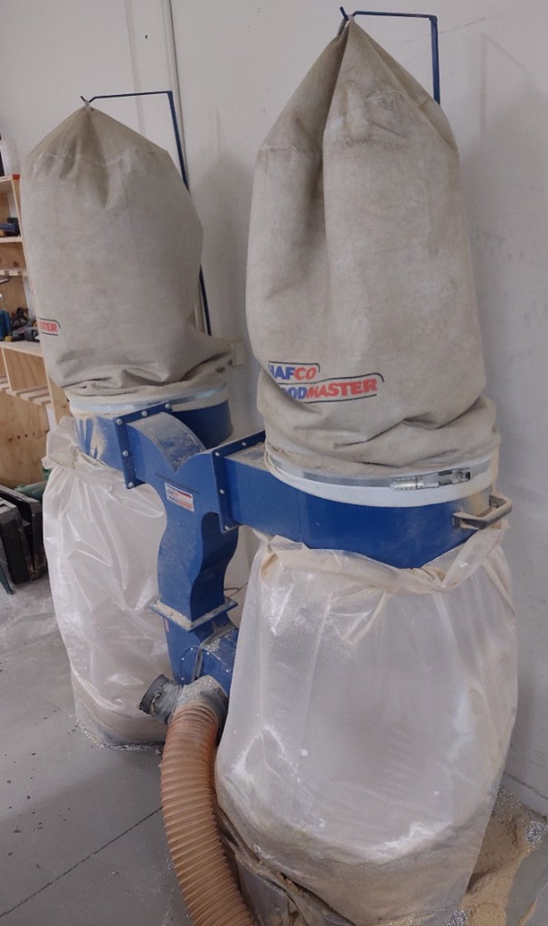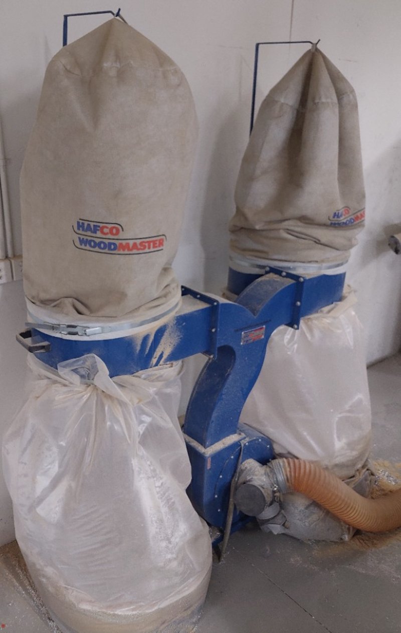 Hafco Woodmaster dust collector. Dims:190cm H, 60cm W, 190cm D. Notes: item untested and signs of wear.
