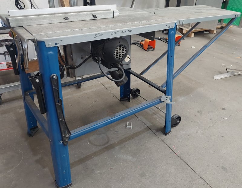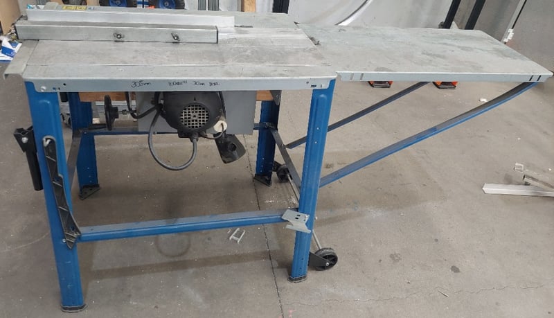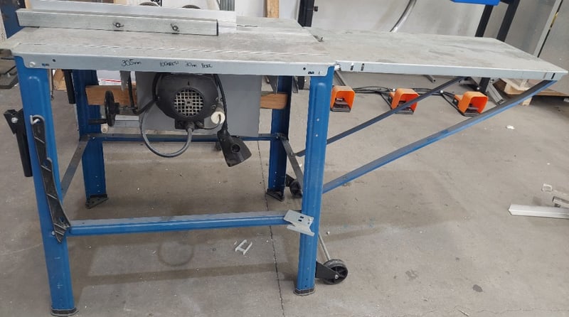Scheppach table saw.Model: TS310Dimensions: 165cm L, 65cm W, 85cm HNote: item is untested, signs of wear.