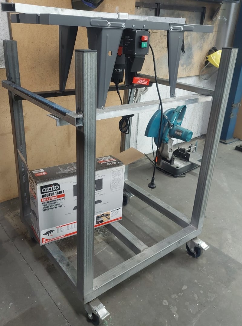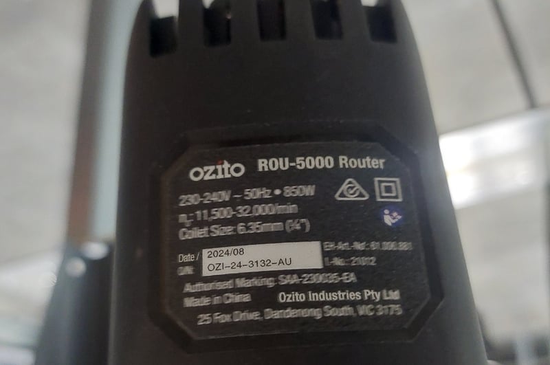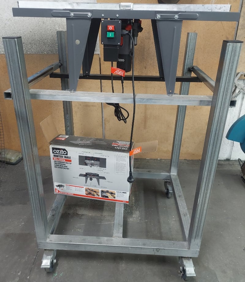 Ozito router table.Model: RT-350Dimensions: 130cm H, 87cm L, 70cm WNote: item is untested, signs of wear.