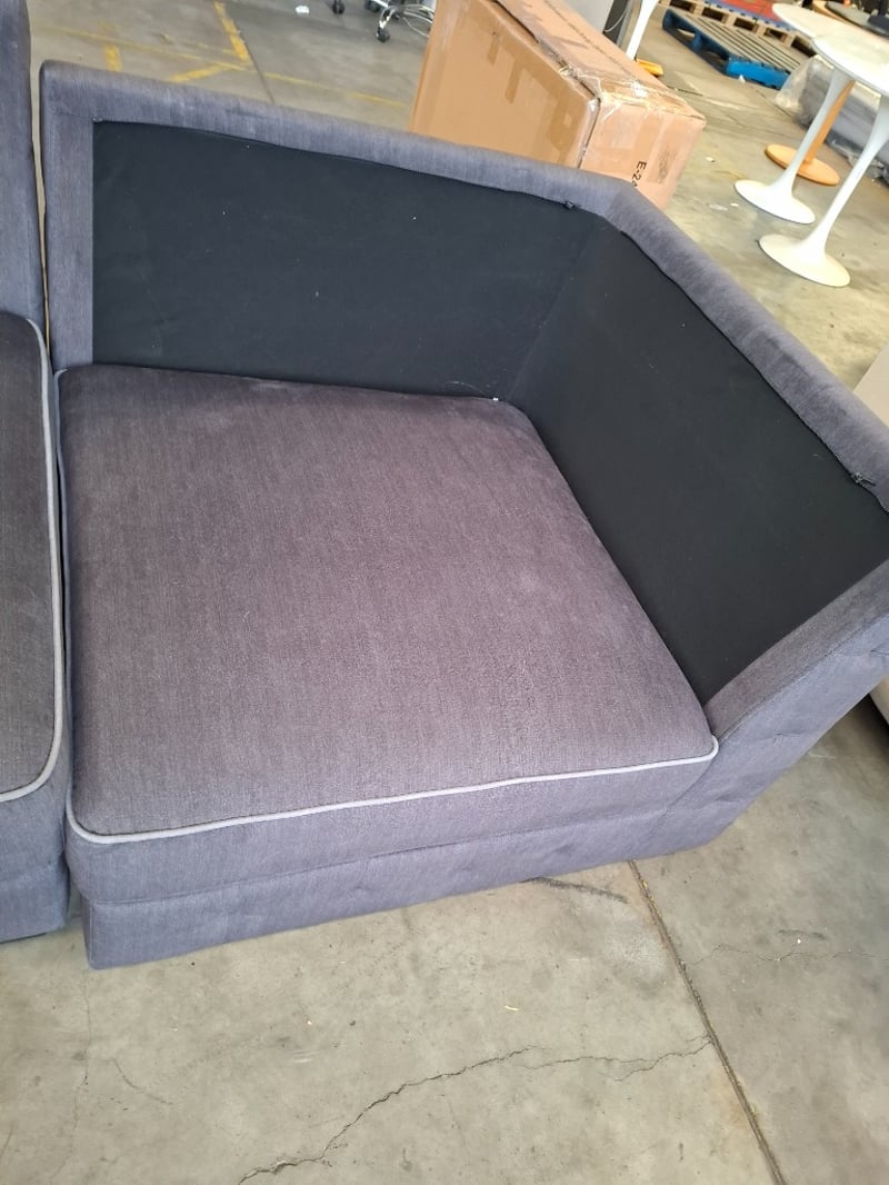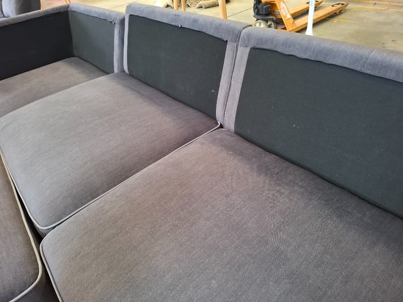 5 seater grey sofa with ottoman Dimensions: 393cm x 205cm x 80cmNote: Sold as is, Inspection recommended, minor cleaning required