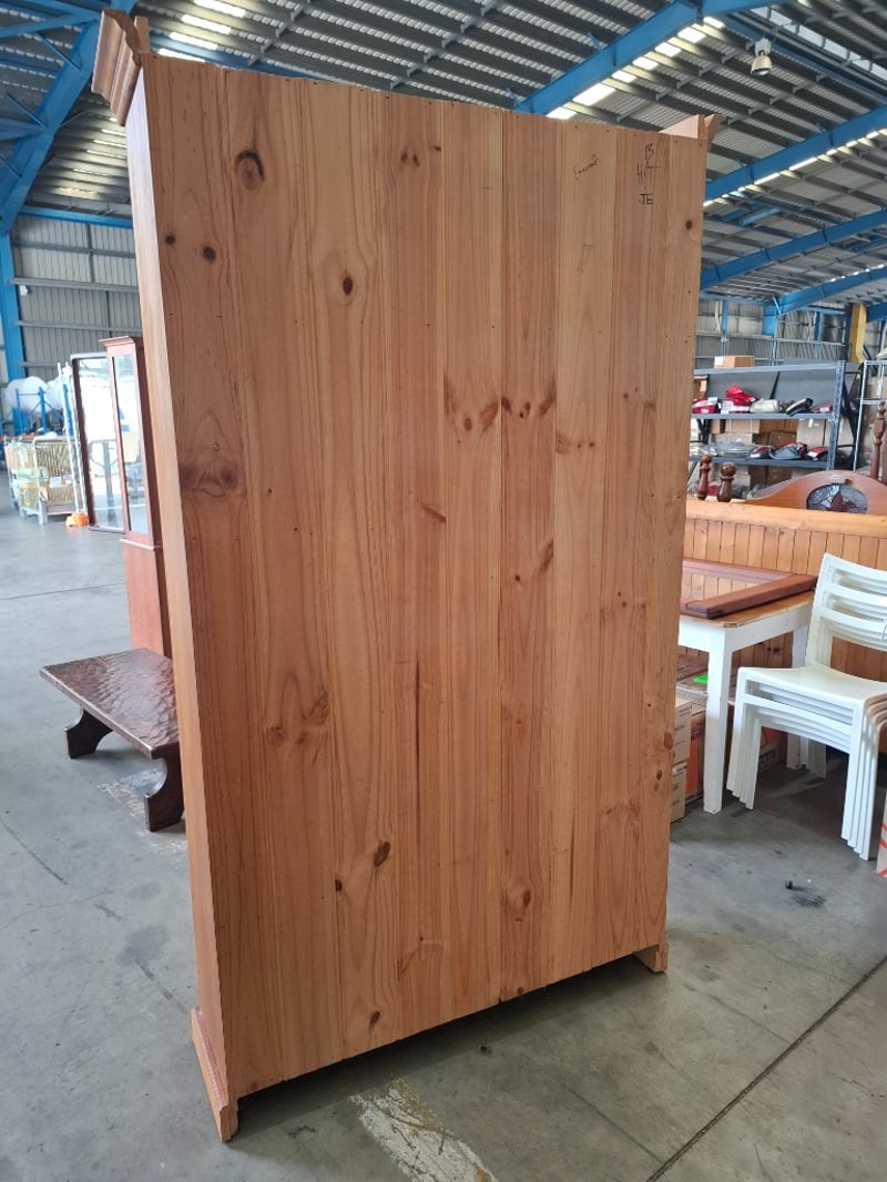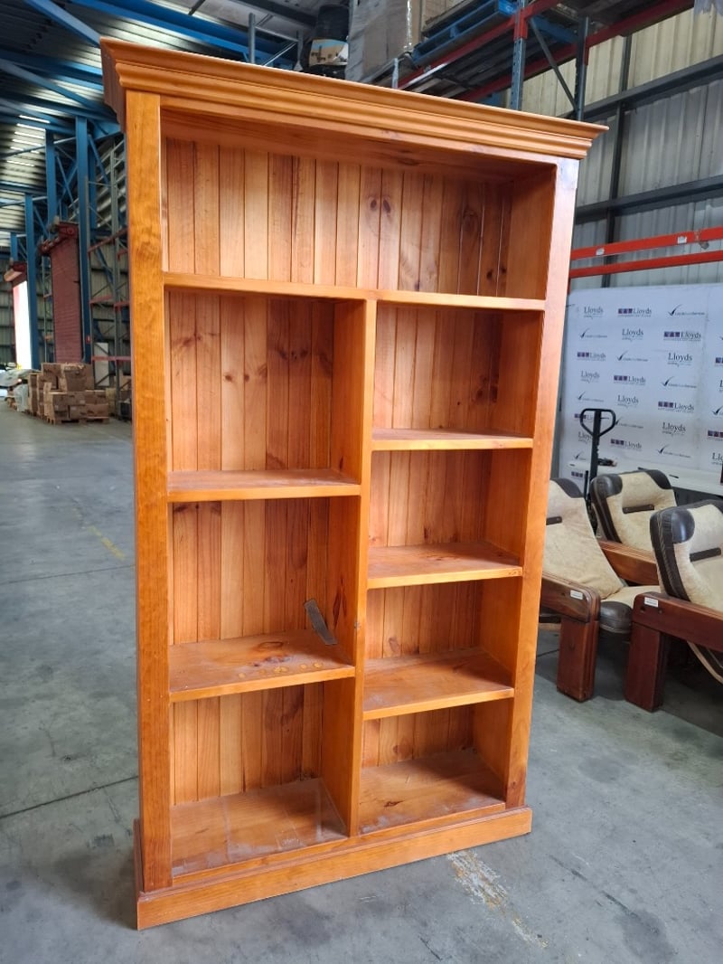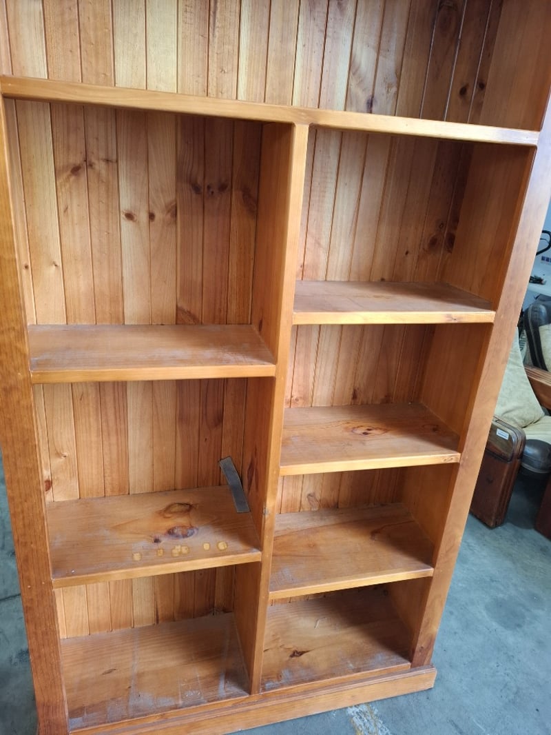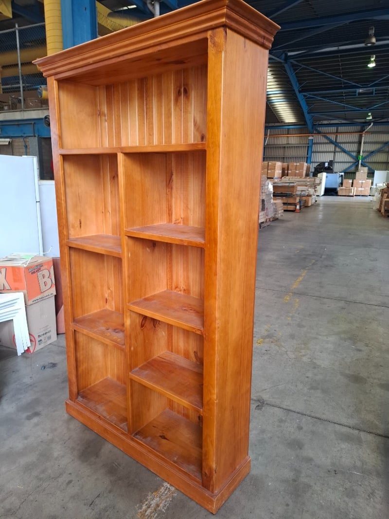 Timber books shelve, light natural steinsDimensions: 126 cm (W) x 36 cm (D) x 211cm (H)Note: minor cleaning required, stains, wear and tear