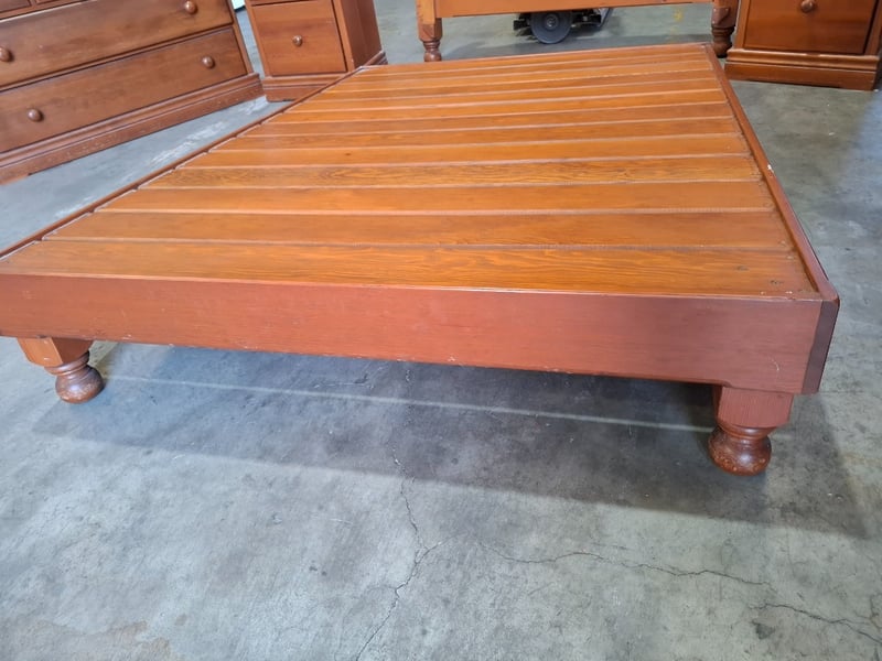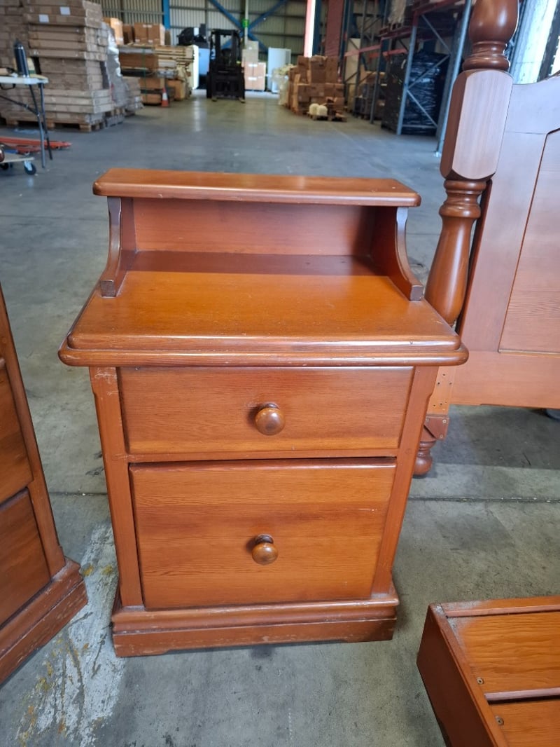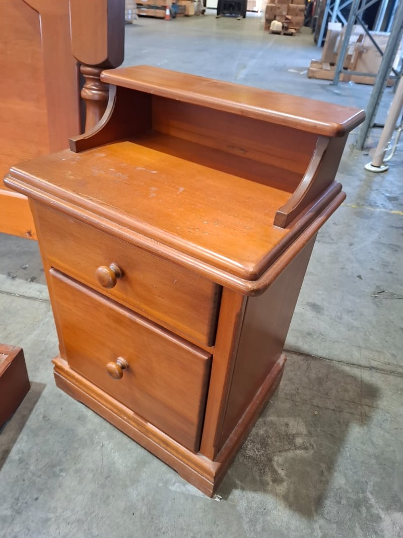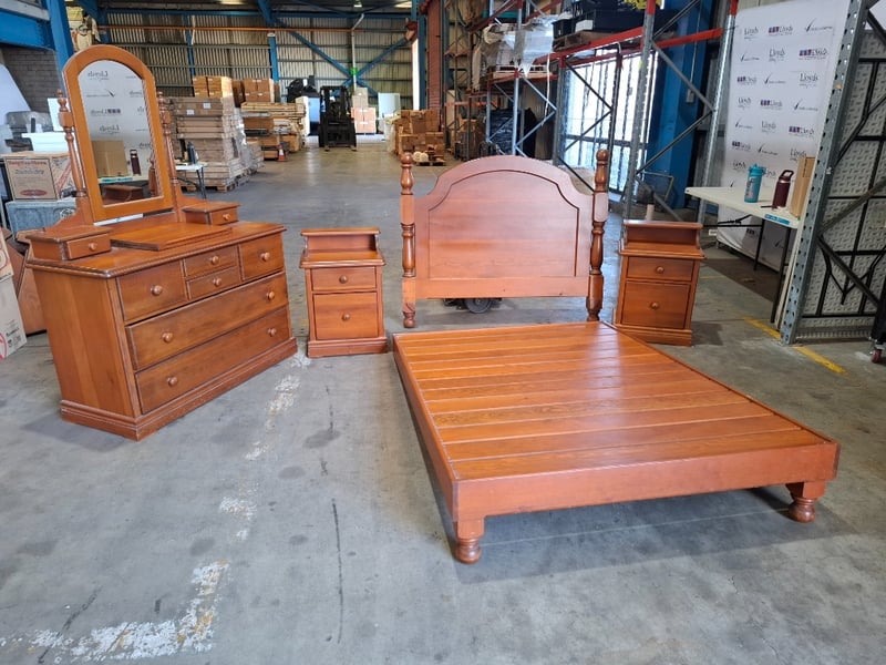 Queen bed With bedside tables that attach and vanity Note: sold as Lot