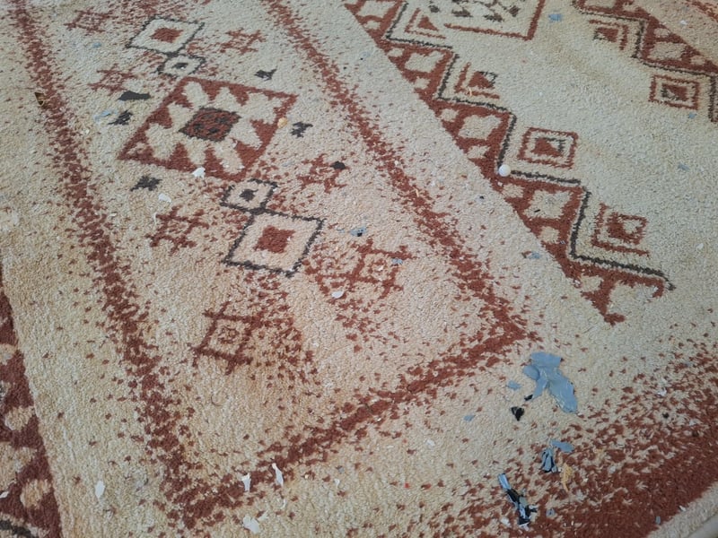 Carpet, colour cream and amber Dimensions 167 cm x 230 cmNote: Cleaning required