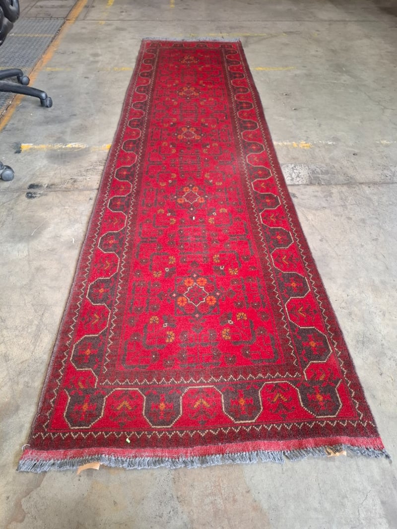 hand-knotted Afghan style runner carpet Dimensions: 300cm (W) x 80cm (D)Note cleaning required
