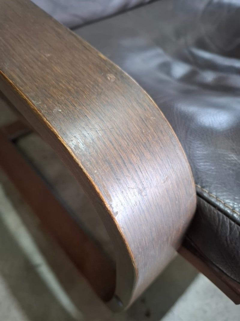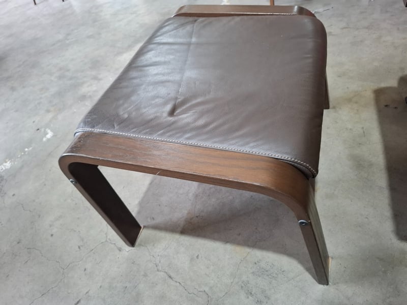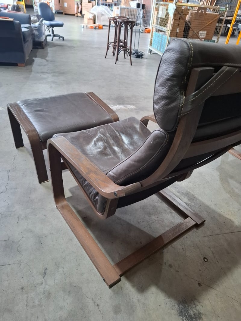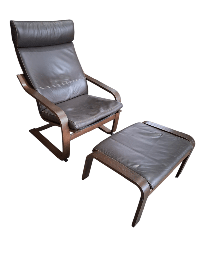 Ikea Poang Chair Armchair and Footstool Set with Dark Brown Leather Covers