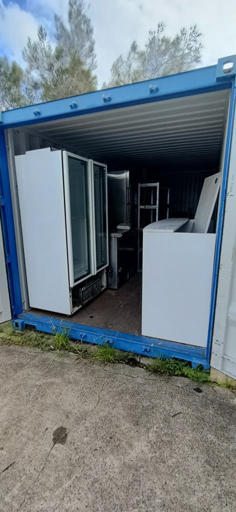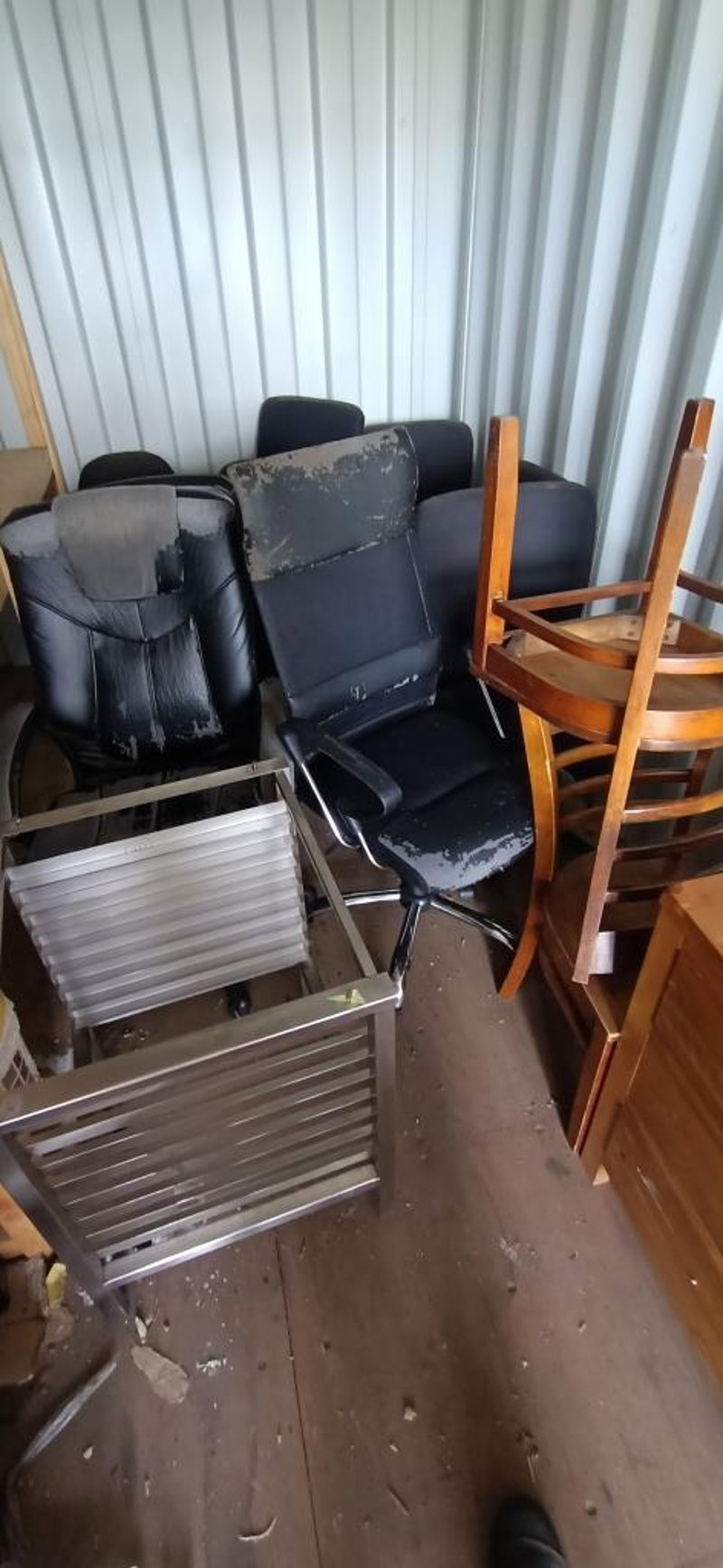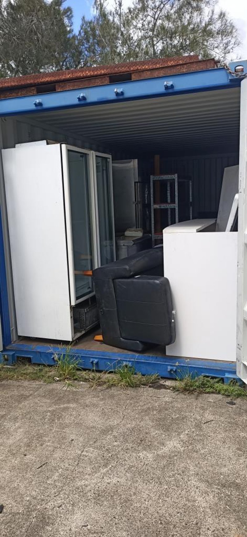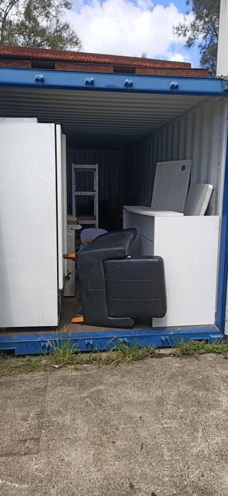 Container Full Of Homewares & Catering Items Including, Recliner Chair, Reception Desk, Fridges, Chairs & More