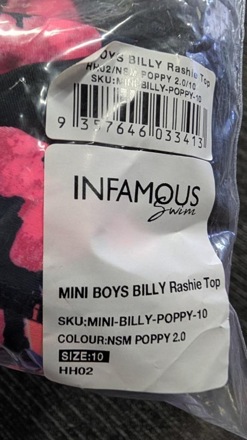 BULK SWIMWEAR, Infamous Swim Billy Rashie Tops and Hank Boardies assorted colour and styles