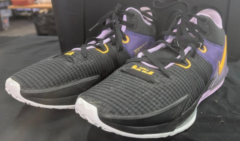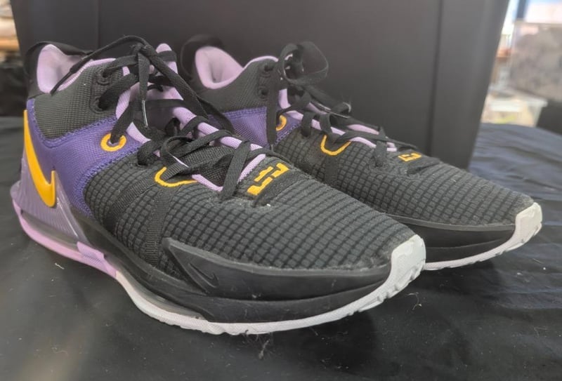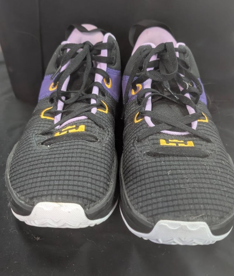 The Nike LeBron Witness 7 basketball shoes in the Black/University Gold/Lilac colorwaySize: Men's US 13Note: box not included