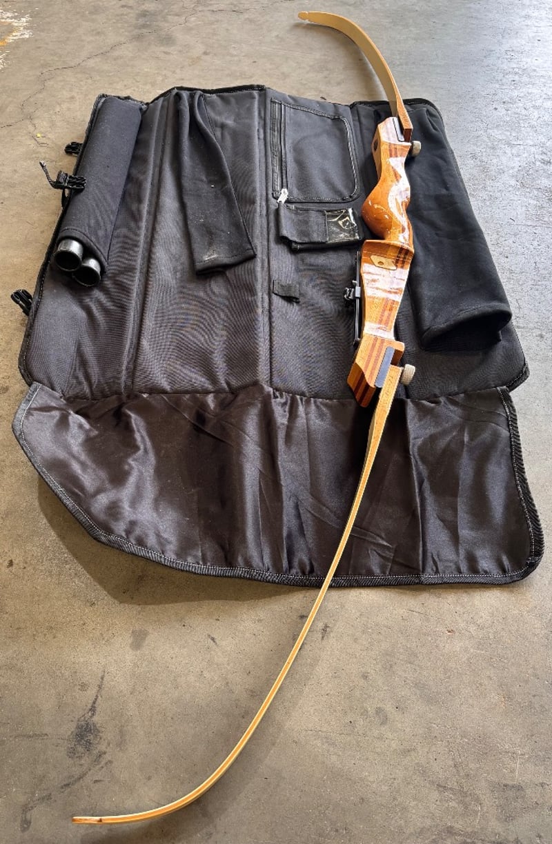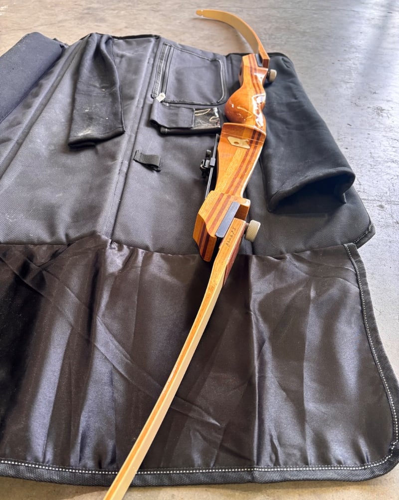 Recurve bow with travel caseNote; minor marks on items, no string included