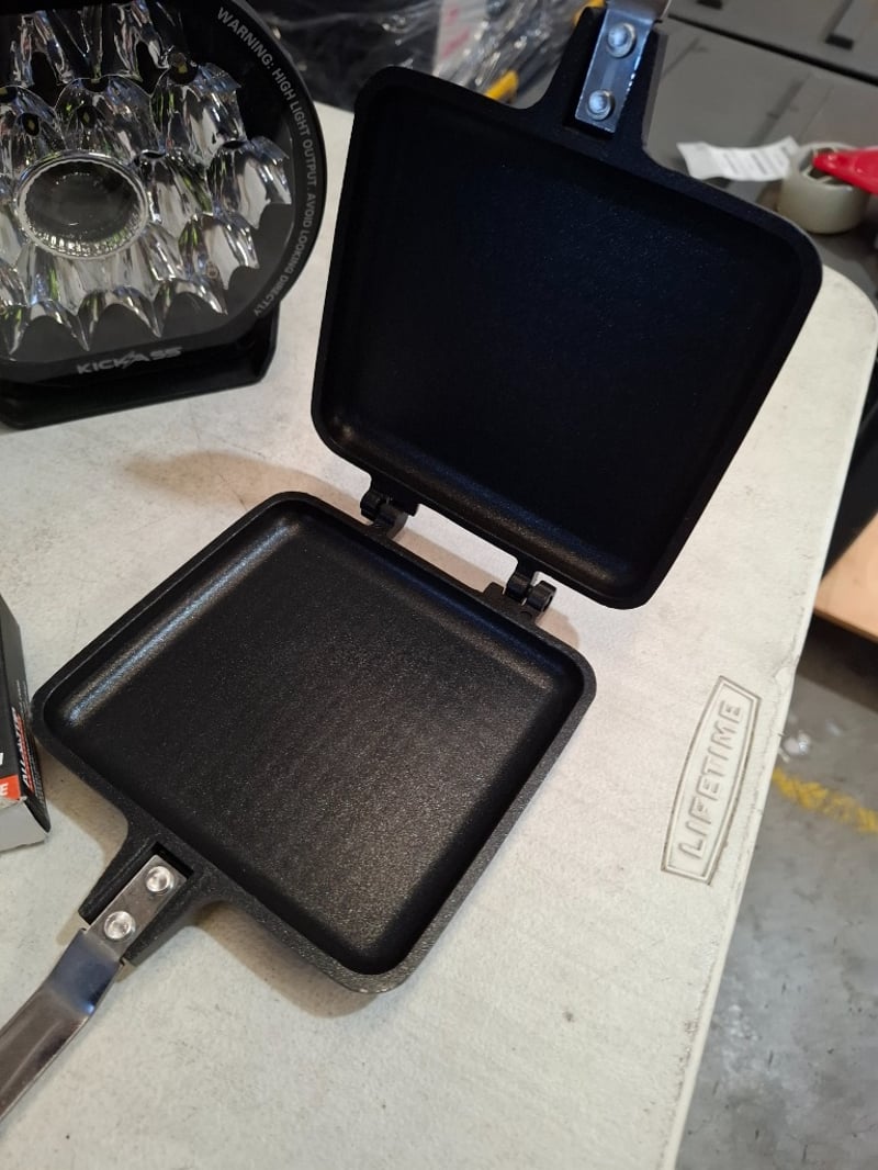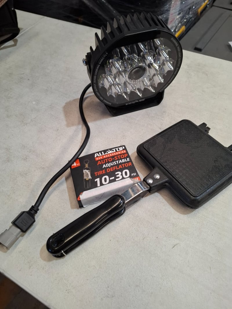 Assortment lot includes , sandwich press, 9" Led light, adjustable tire deflactorSold as lot
