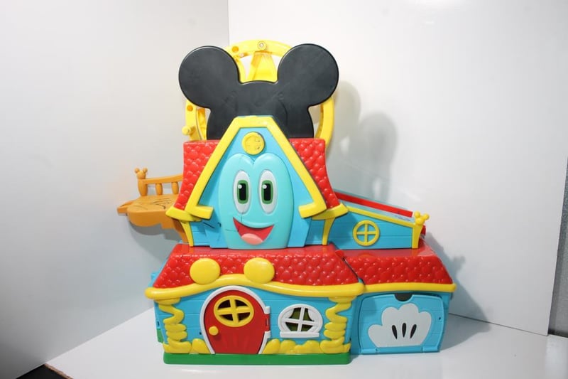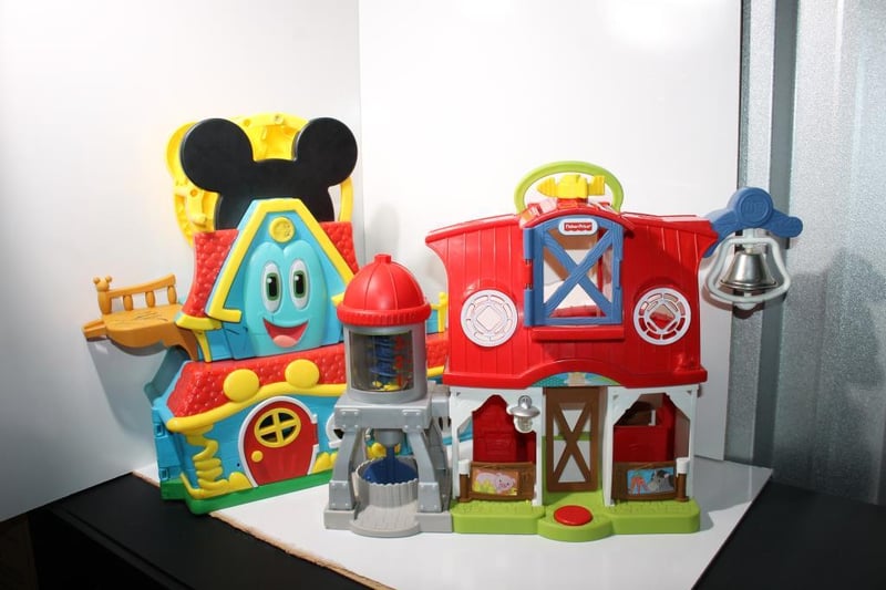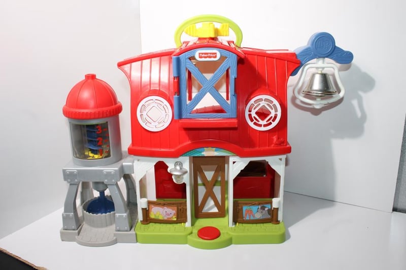 Fisher-Price Little People Barn & Clubhouse Playsets (2)Fisher-Price Little People red barn with bell and silo, plus Mickey Mouse themed clubhouse playset.Two plastic playsets as shown, visible surface marks and general wear.